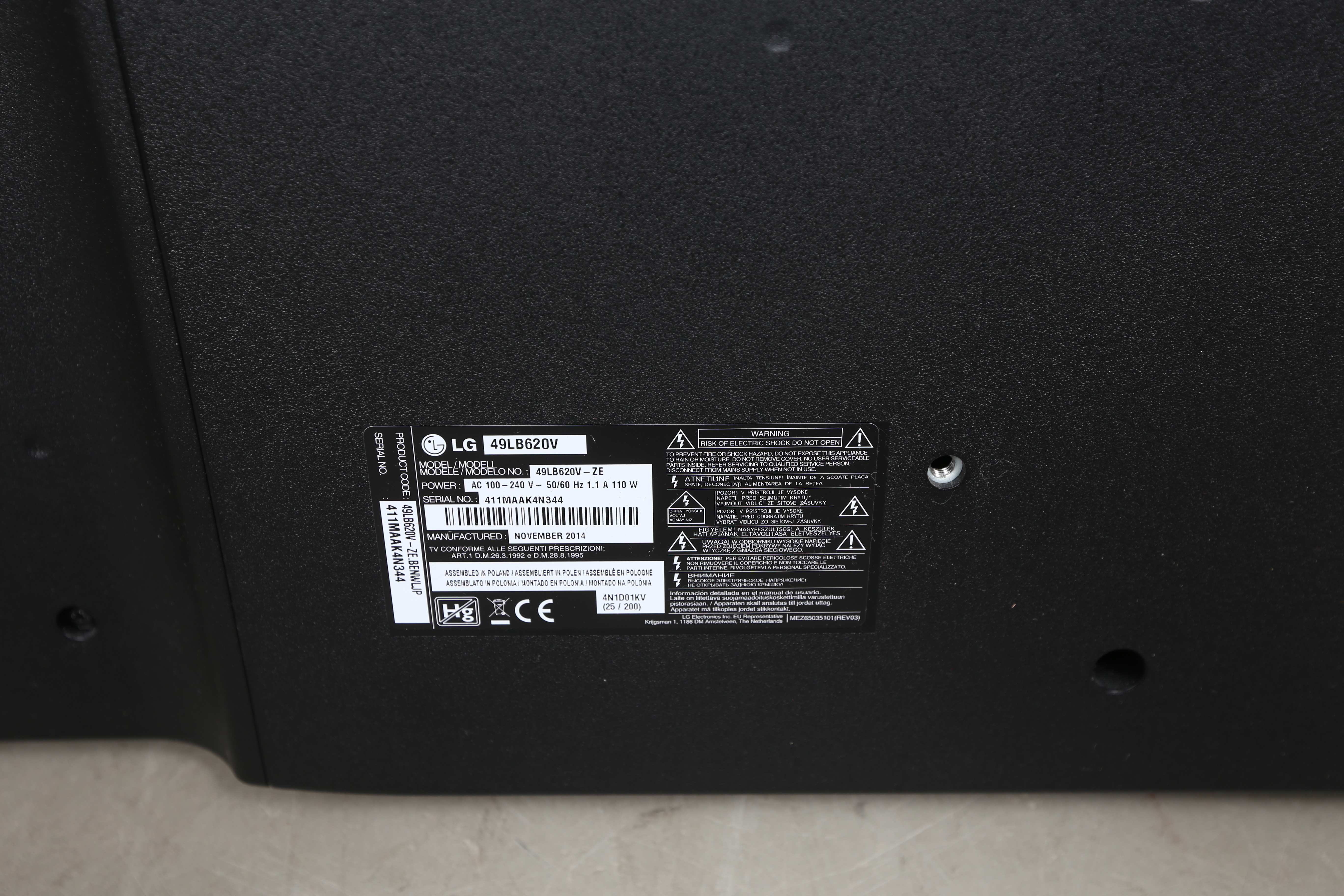 2996274. TV, LG, LG 49LB620V.