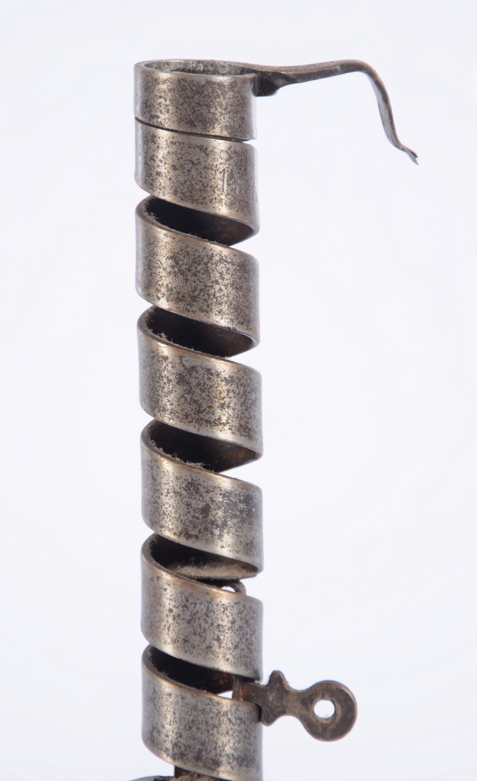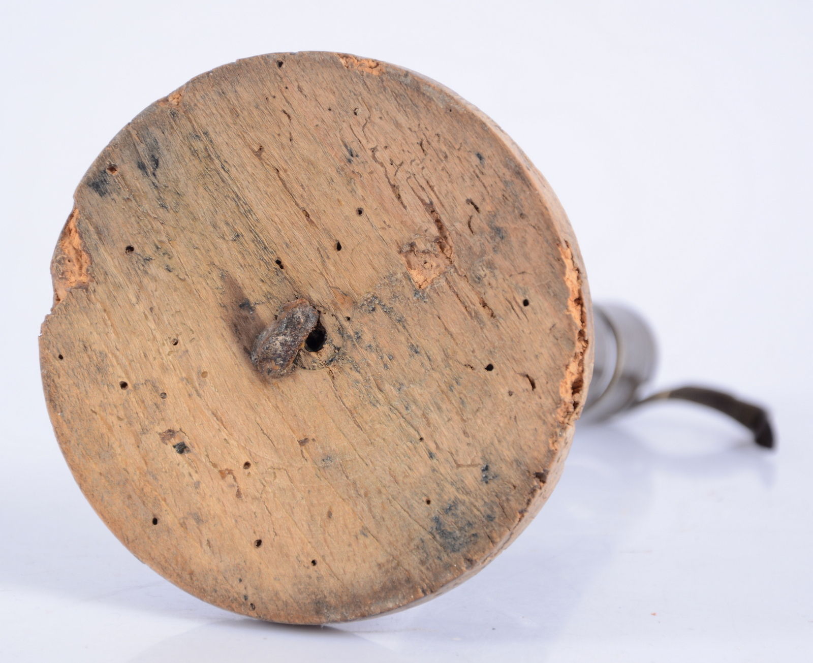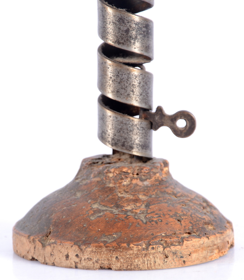 299920. Smedet lysestage med træfod, 1700-tallet.