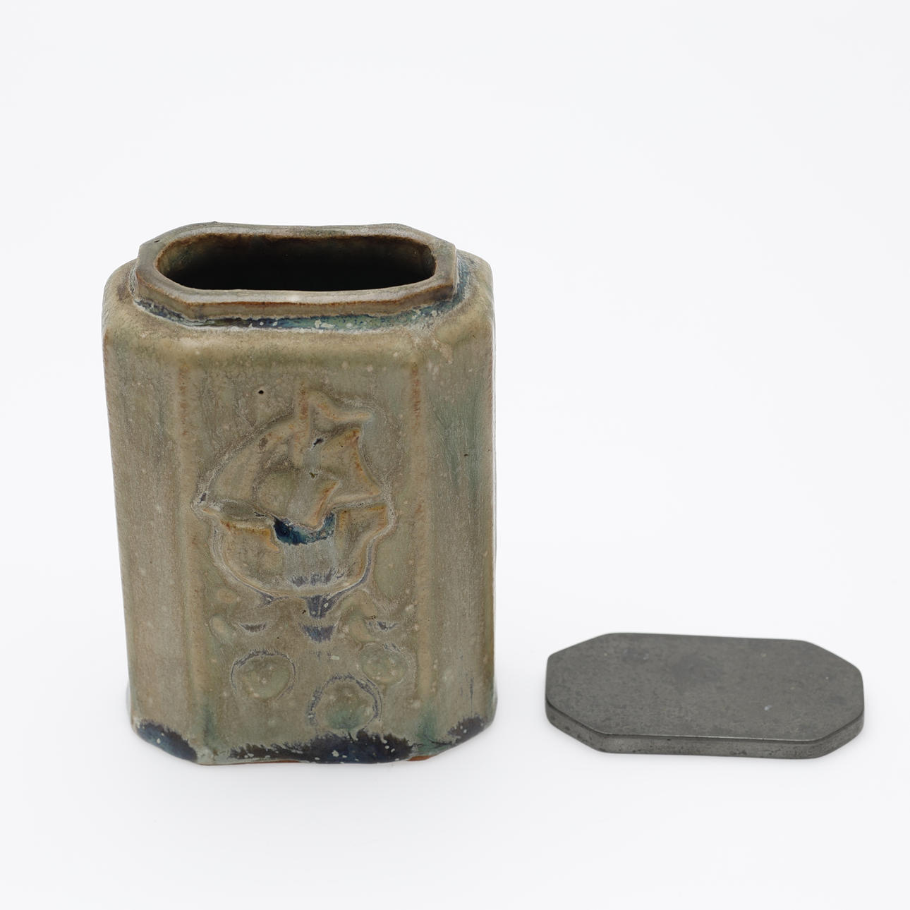 ARNE BANG. LÅGKRUKKE, Tin Låg, Stentøj, Eget Værksted, Danmark, Model: 29.