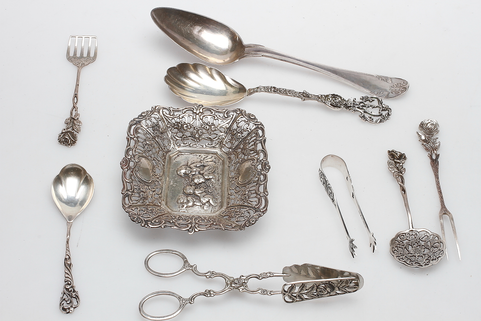 300551. Sæt SØLV, 9 dele, ca 278 gram.