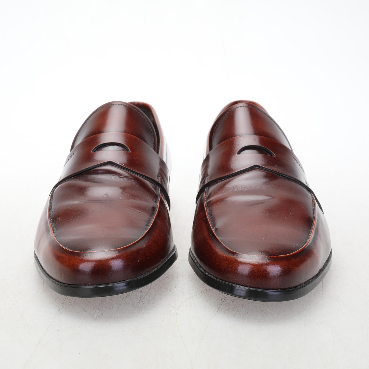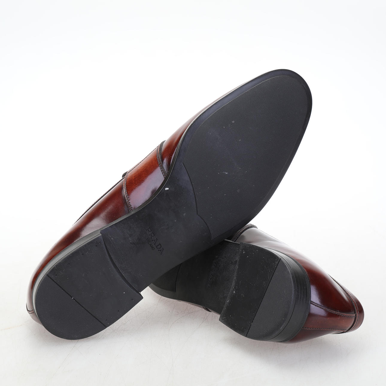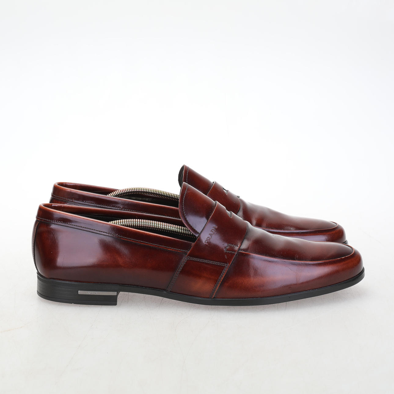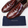 Prada Loafers i brun poleret læder til mænd. Str 10, indvendig mål ca 30 cm. Træskoblok og støvpose medfølger. Prada er præget i læderet og på hælen.
