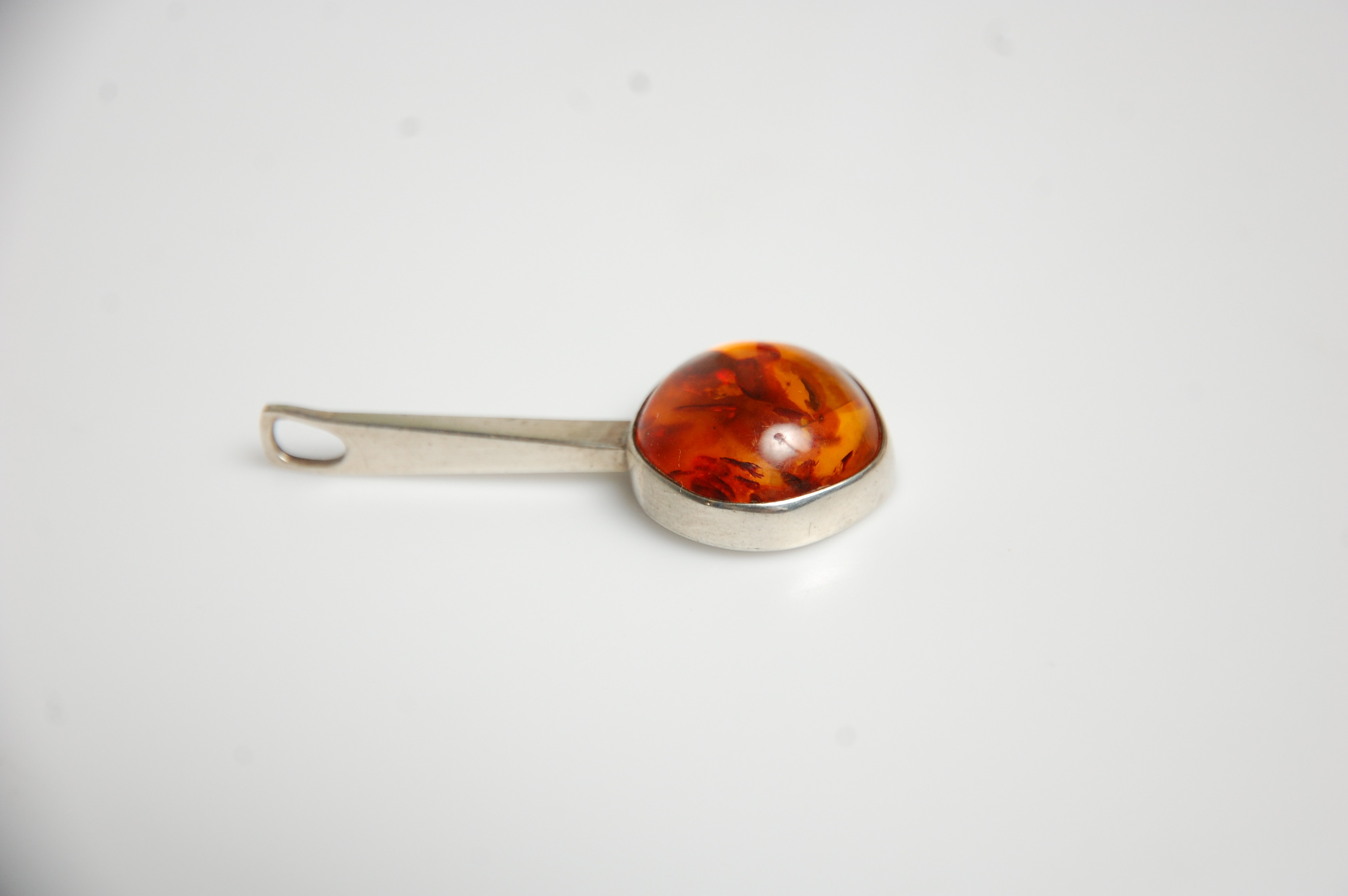 301077. Vedhæng, sølv med rav, Danmark 1960'erne.
