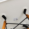 Sæde af hvidt sted på benstativ af træ og sort metal. Mærket. Sædehøjde ca 43 cm.