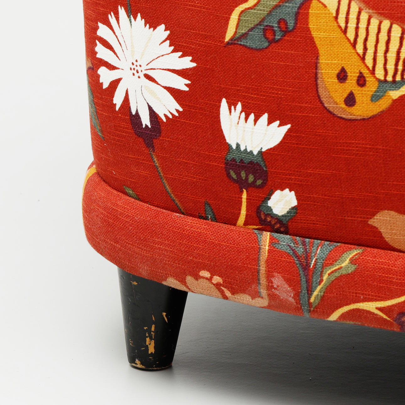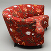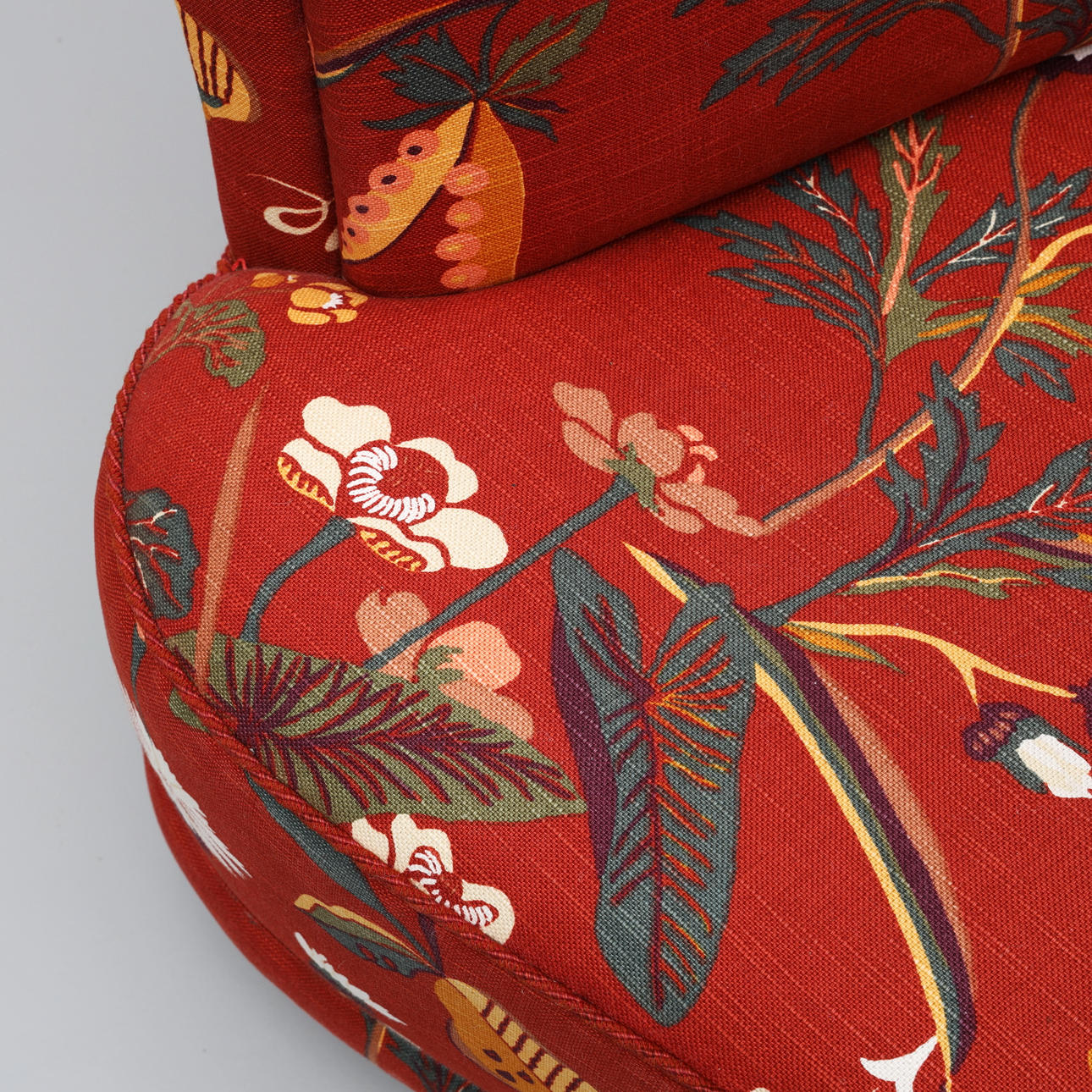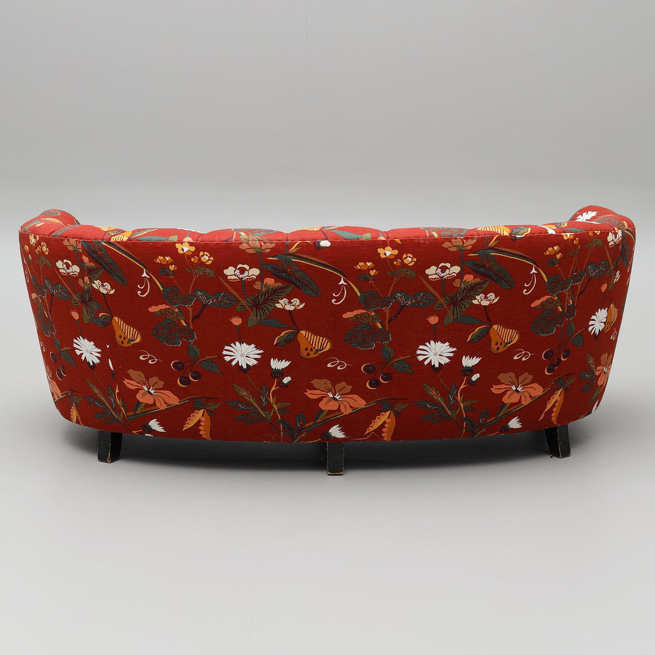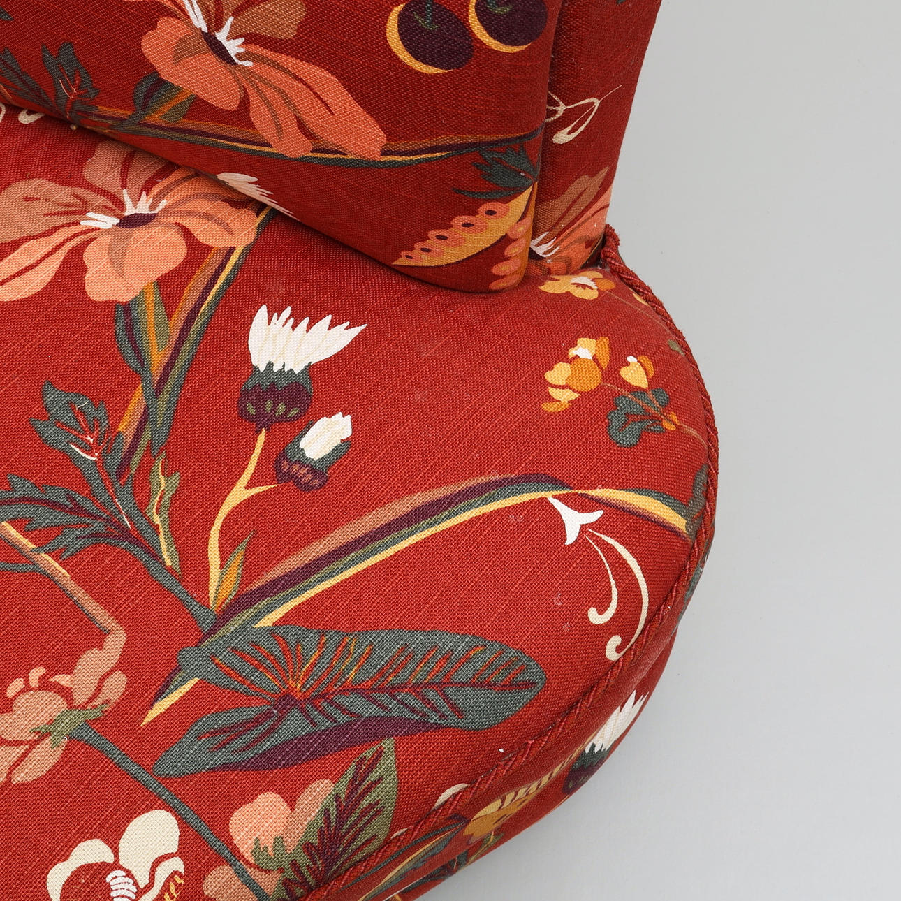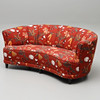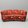 3014387. SOFA, buet, rustrød, blomstret polstring, midten af det 20. århundrede.