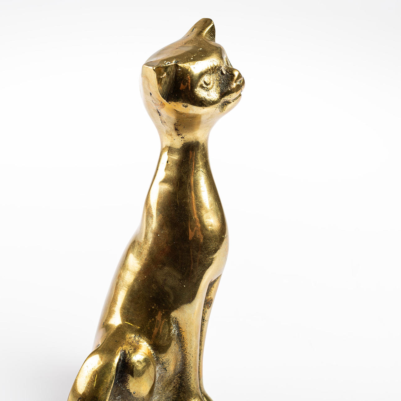 3015187. SKULPTUR, kat, messing, 1950/60'erne.