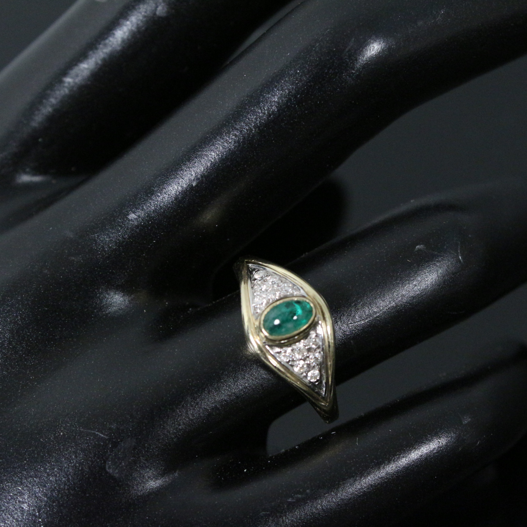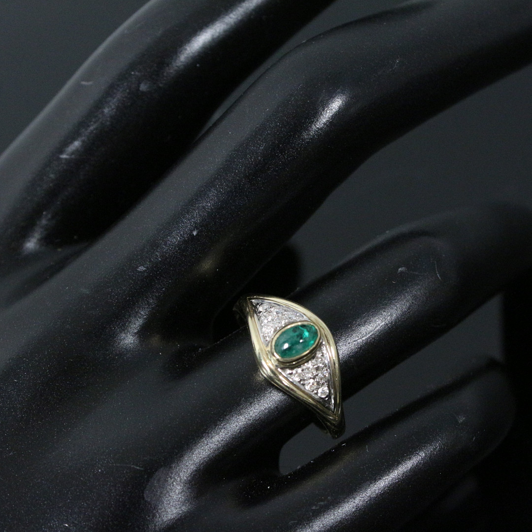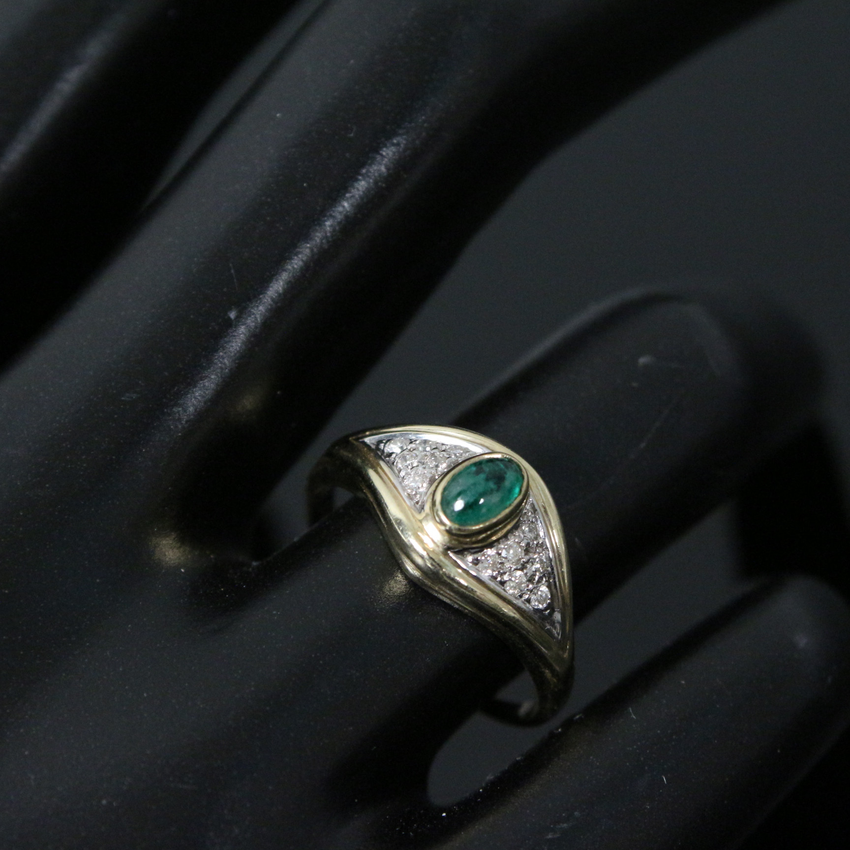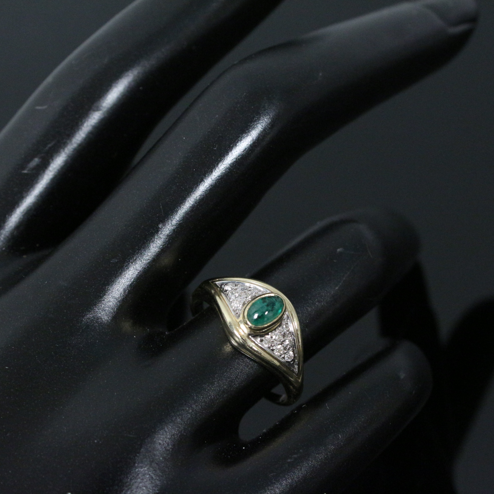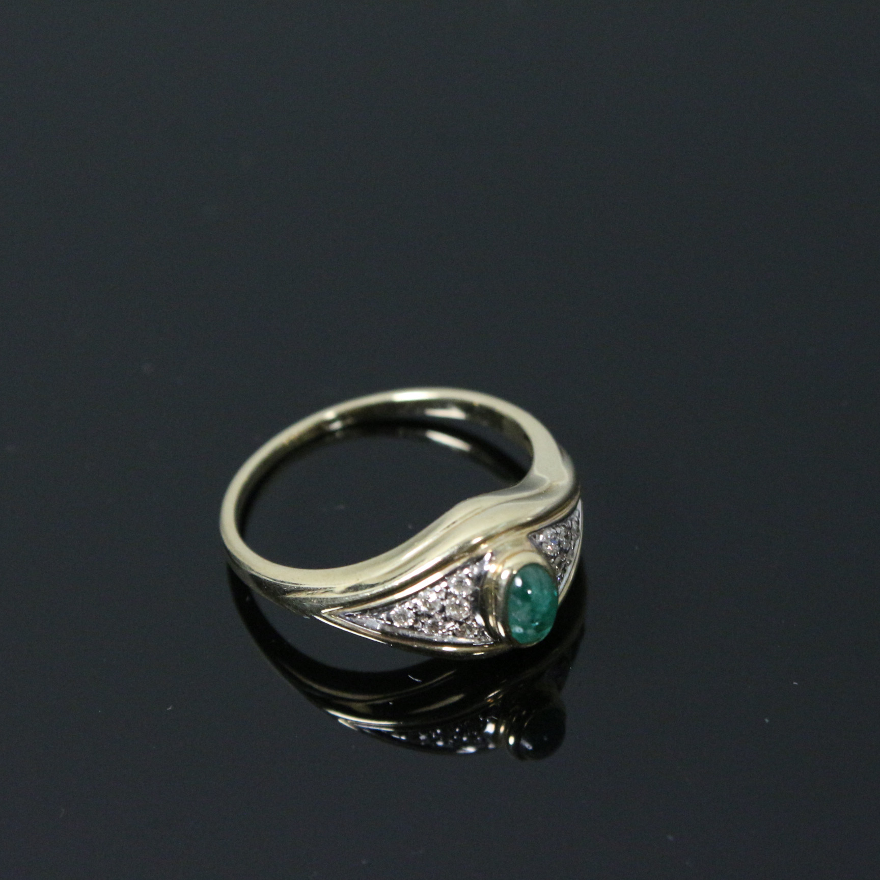 3015477. Ring med smaragd og diamanter, 585 gul guld.