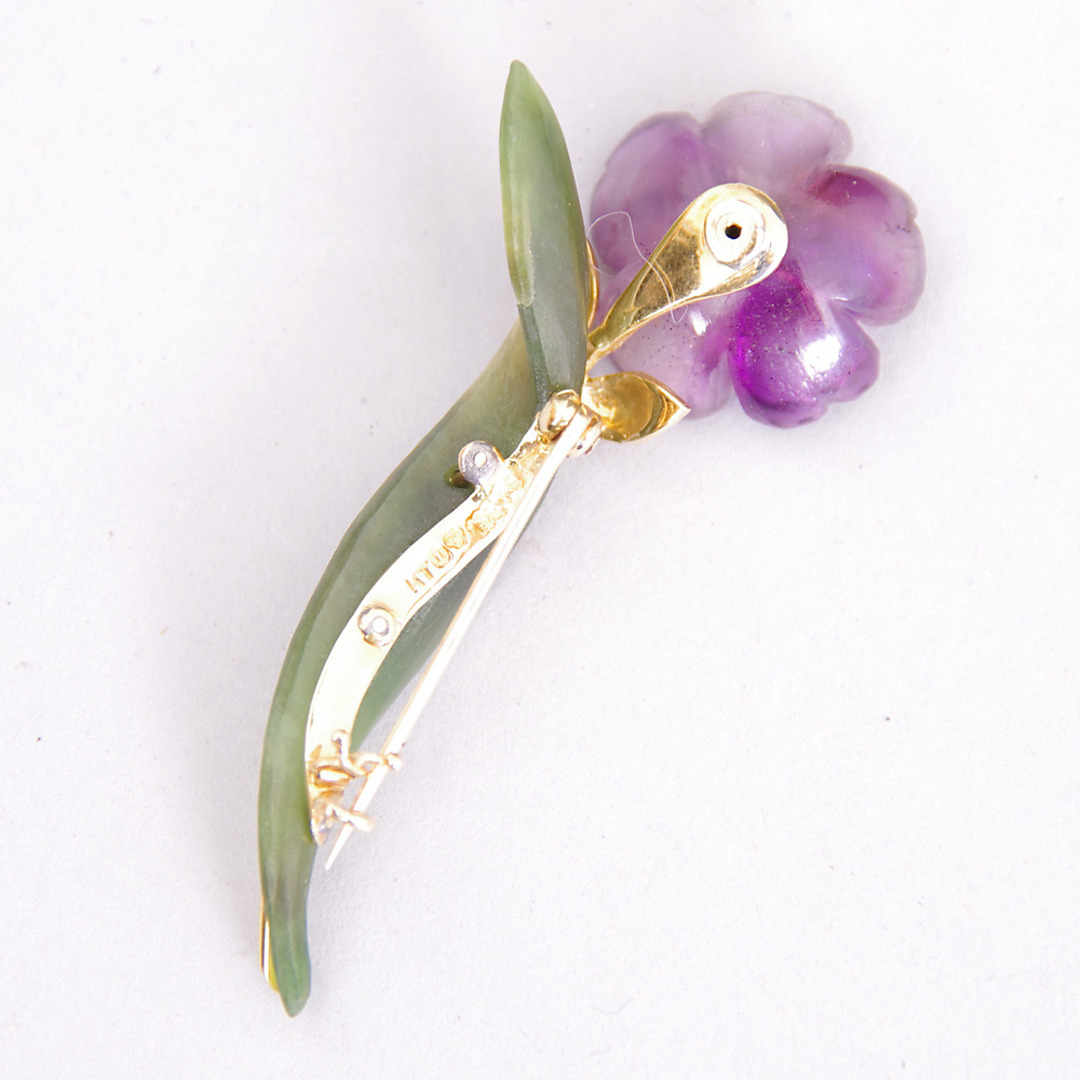 301601. BROCHE, blomstersæt i 18K guld.