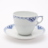 5 tallerkener diameter 25 cm 5 dybe tallerkener diameter 21 cm 6 tallerkener diameter 17 cm 1 fad længde 33 cm 2 skåle diameter 16 og 21 cm 4 kaffekopper med underkopper 2 underkopper længde 24 cm 1 firkantet skål ca 20x20 cm.