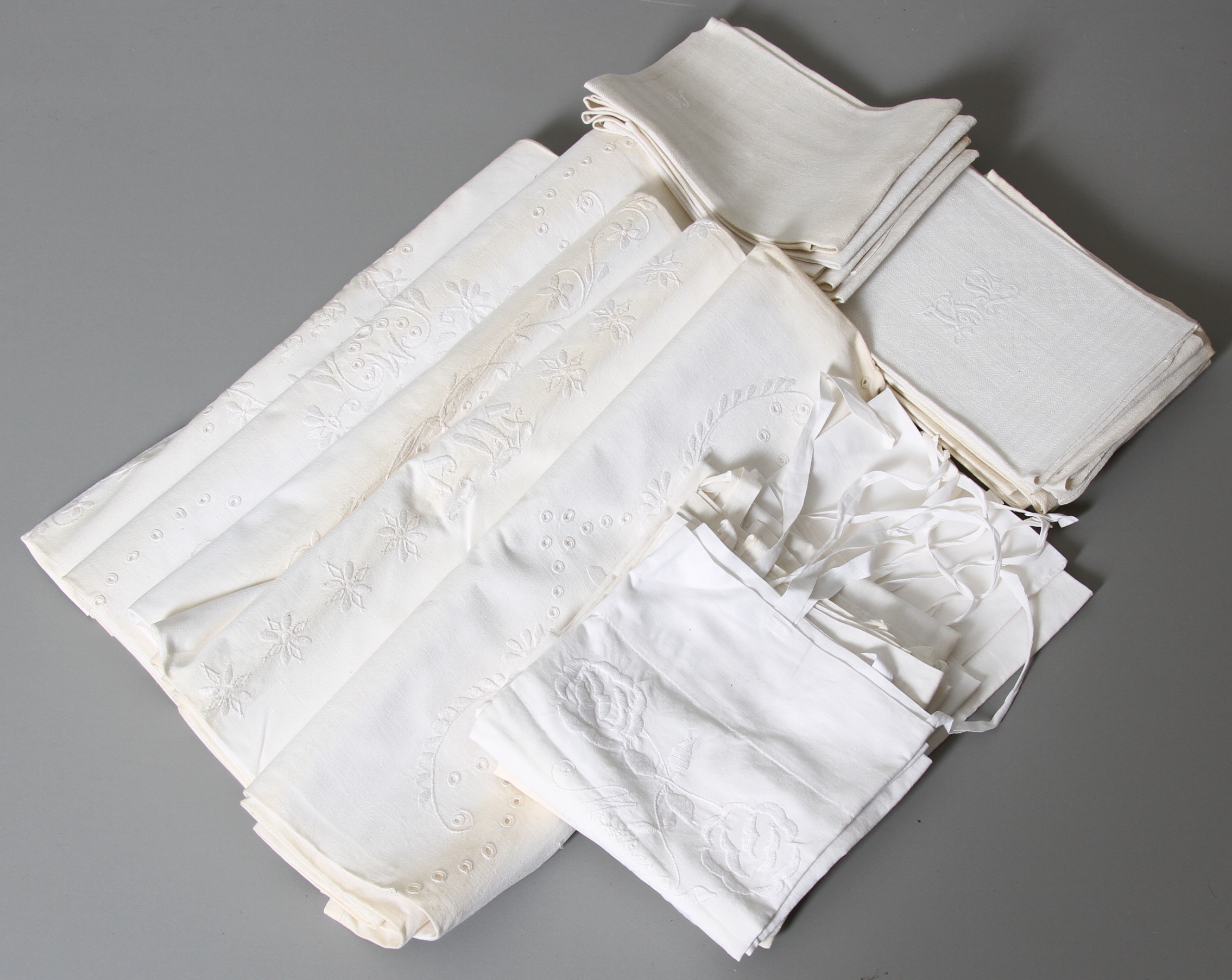 30216. LAGENDER, PUDER OG linnedhåndklæder, 20. århundrede.