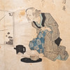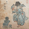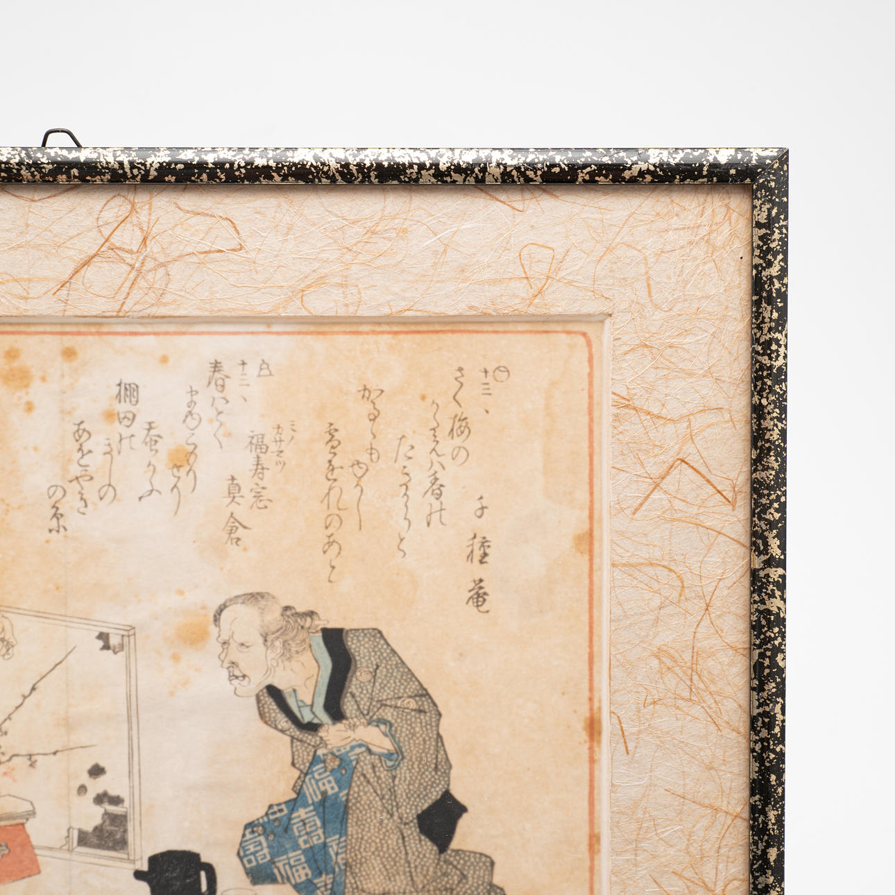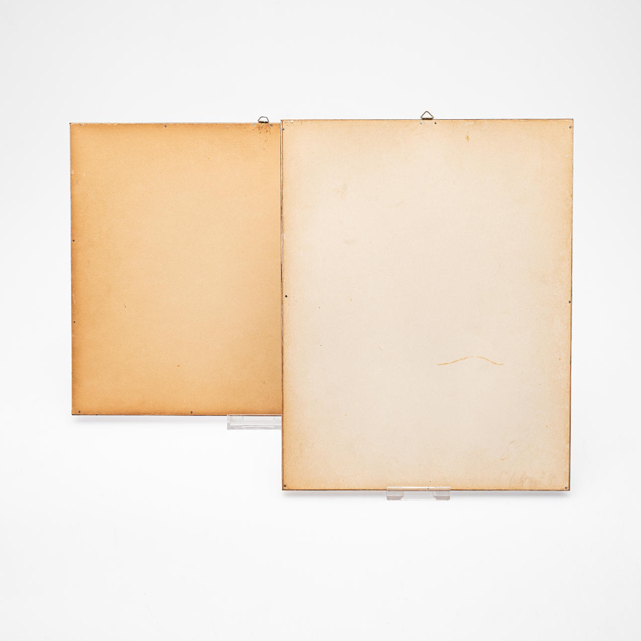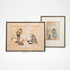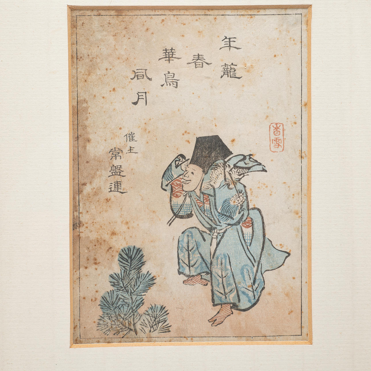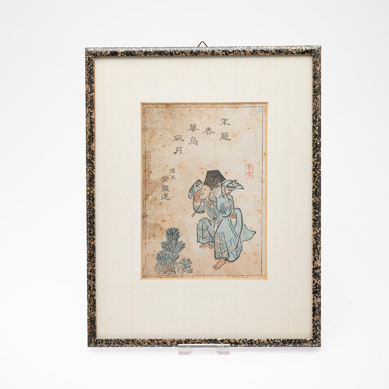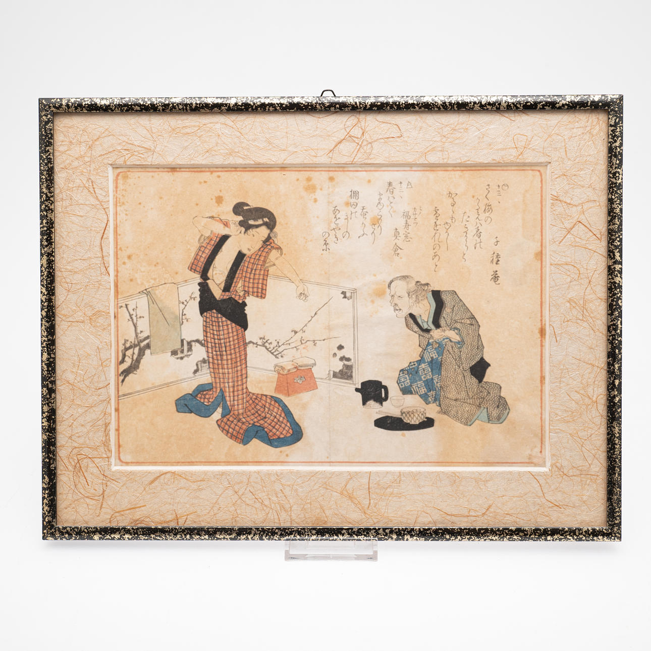 To grafik og en grafikmappe, Asien. Blandet parti bestående af to tegninger, den ene forestiller en geisha og den anden forestiller en vis mand, hver med asiatiske tegn, 19-20x13,5-28cm (29-32x25-37,5cm), samt en mappe med otte løse Tegninger med grøntsagsbilleder, 24x32cm. (10).