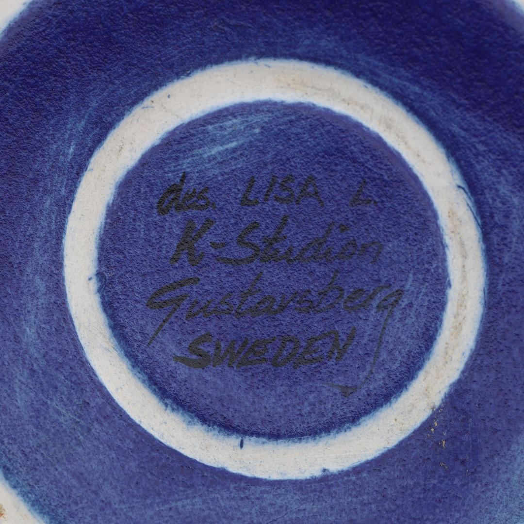 3030279. LISA LARSON. ANSIGTSVASE, Gustavsberg, Blå Glasur.