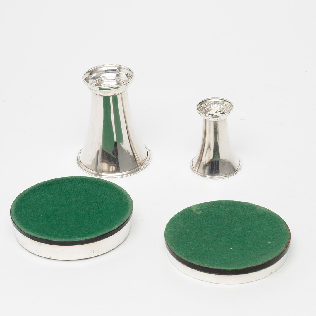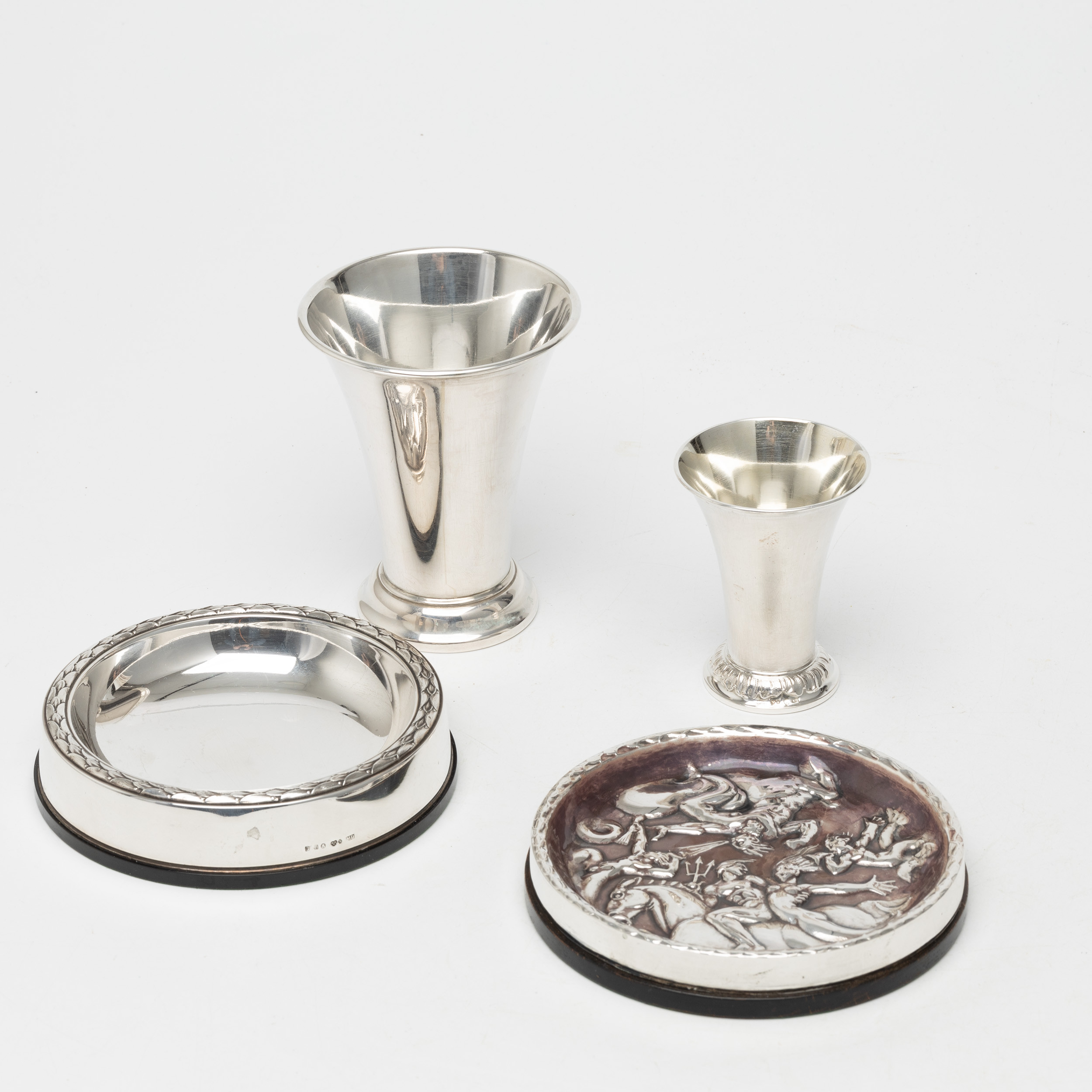 3031498. PLADE / COASTERS, 2 stk, og KOPPER, 2 stk, sølv.