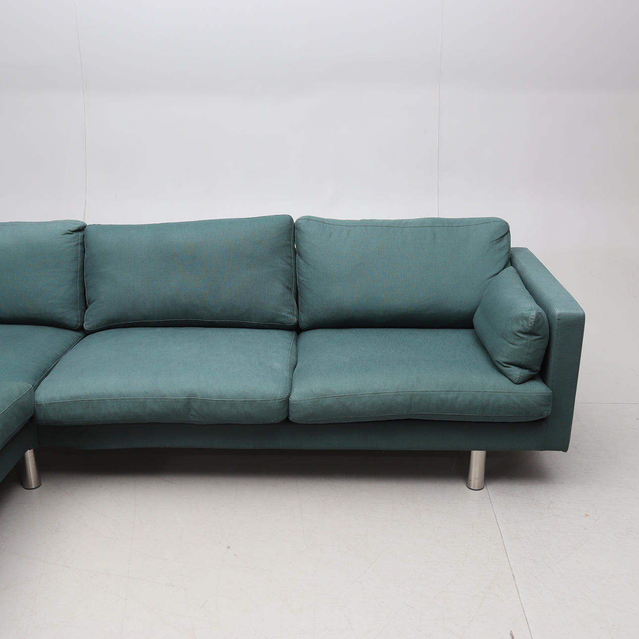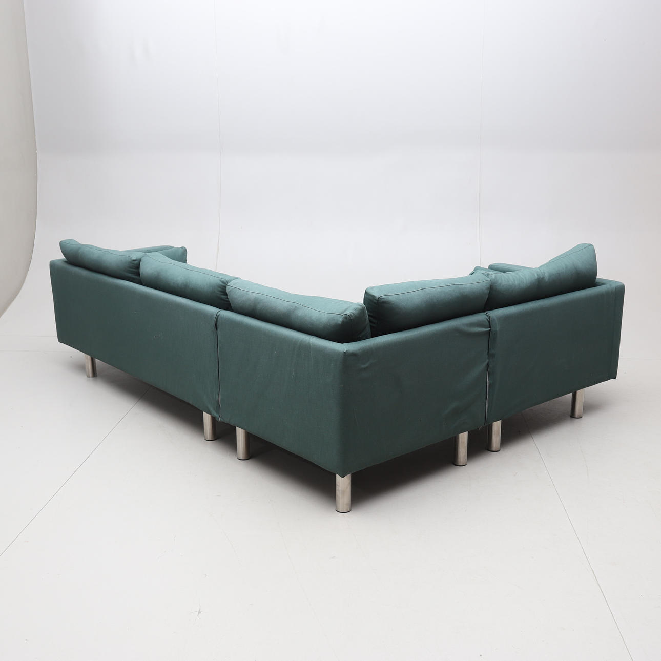 Hjørnemodel, ryglængder ca 187 x 260 cm. Løse fjer i ryg og sæde. Aftageligt dæksel. 3 dele.