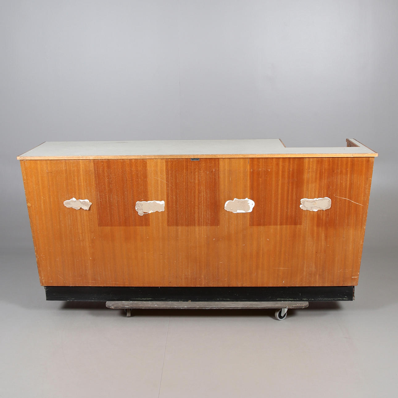 Brugsslitage. Skader, mærker. Overflader med rester af byggelim på fronten.
