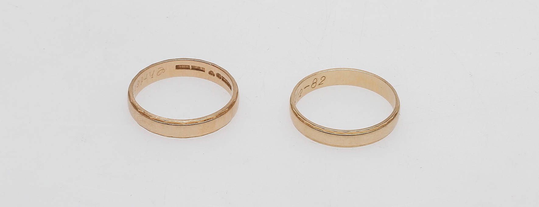 303591. RINGE, 2 stk, 18k guld, vægt ca 5,8 gr.