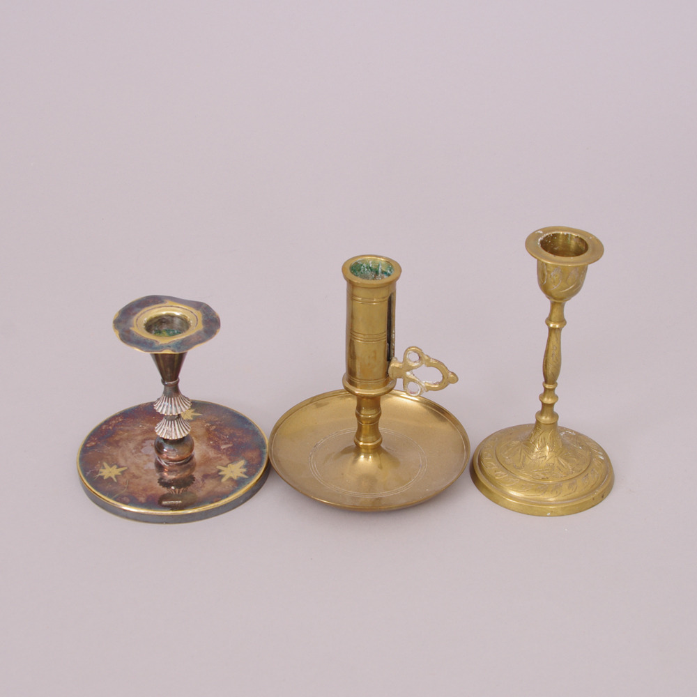 303657. Lysestager, 3 par, messing/ nysølv.