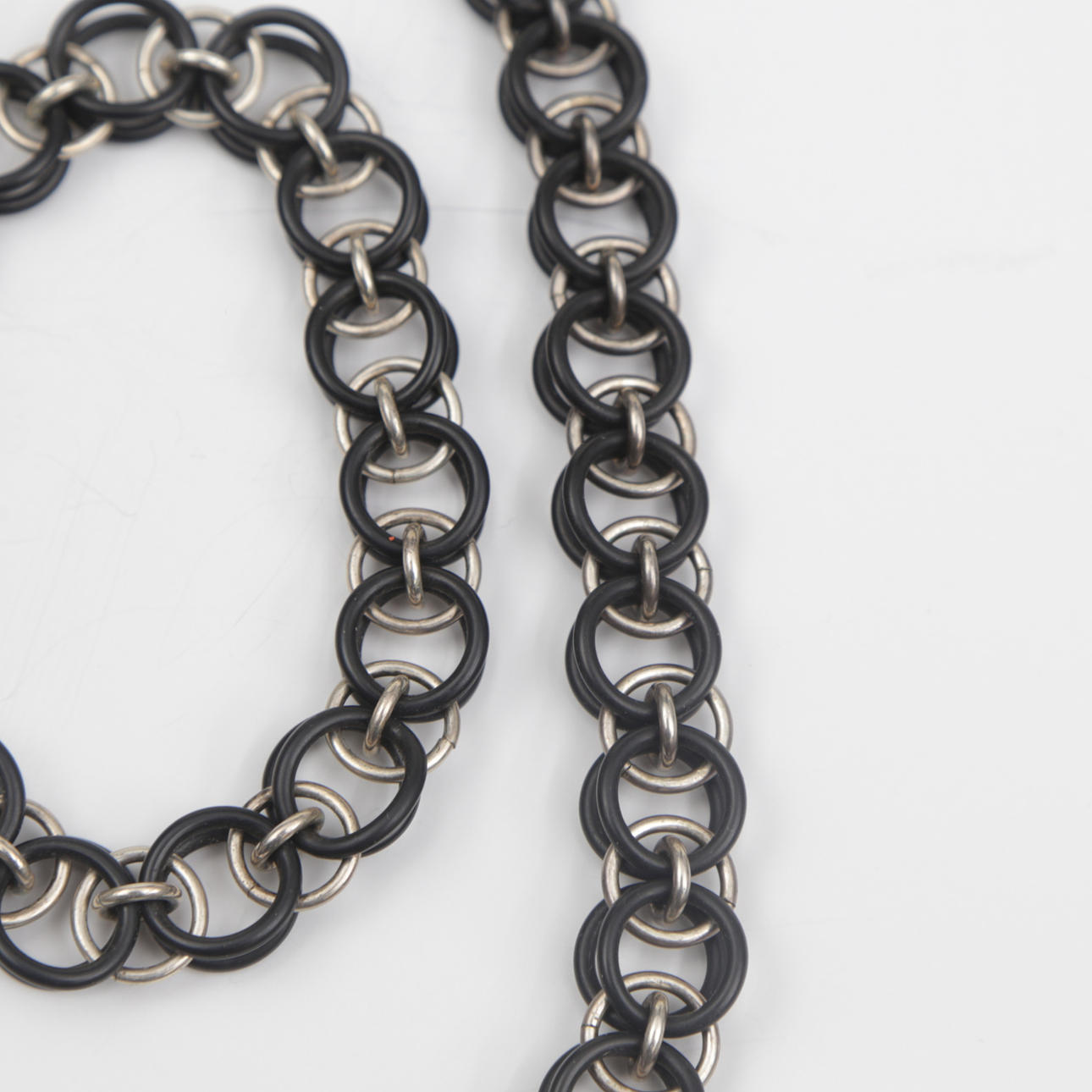 3038780. HALSKÆDE og ARMBÅND, sølv/gummi.