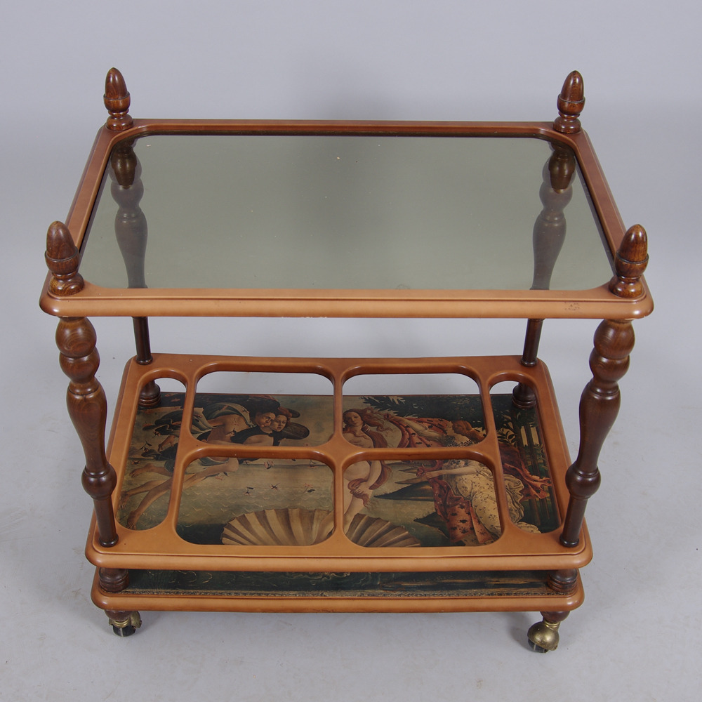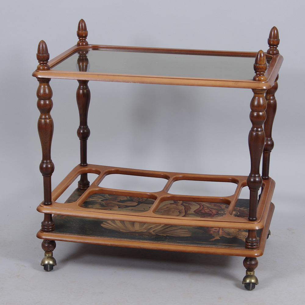 303977. SERVERINGSVOGN, træ med glasplade.