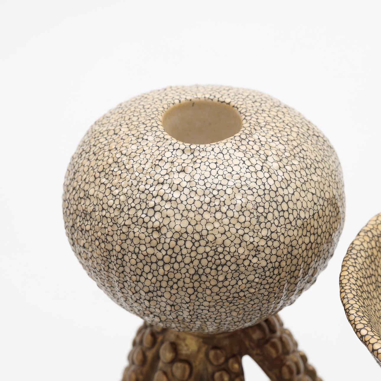 LYNESTAKER, 2 stk., "Blæksprutte", messing/stentøj, 2000-tallet.