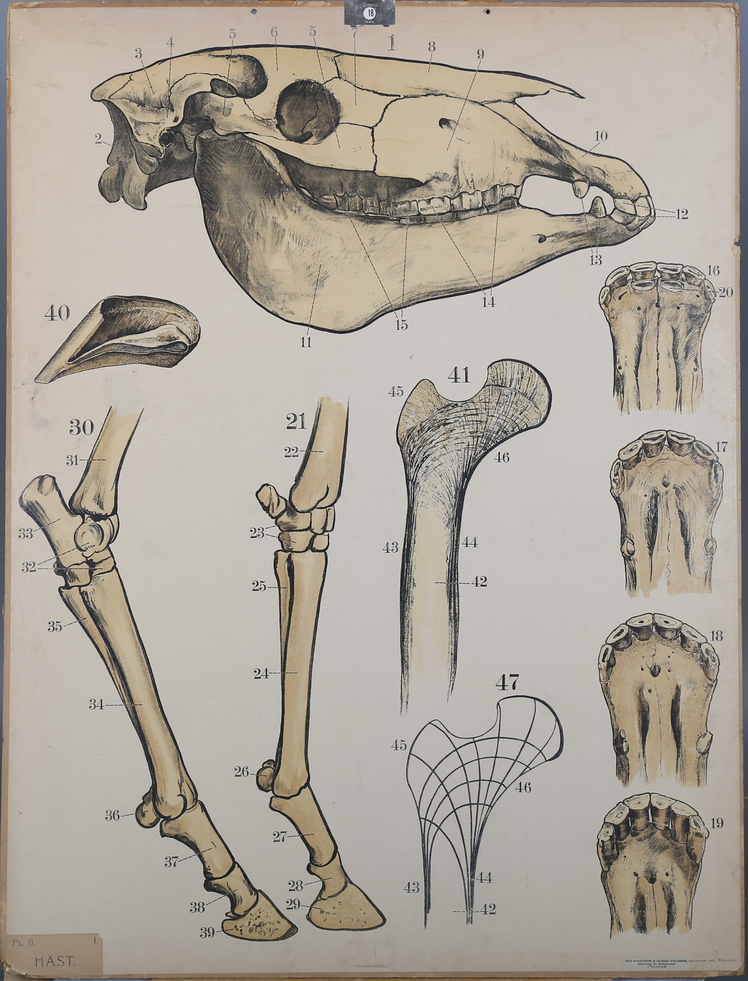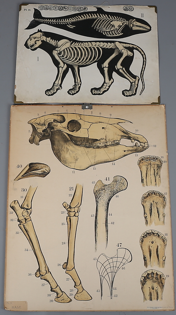 304130. SKOLE PLANER, 2 stk, skelet bl.a. en "Hest".