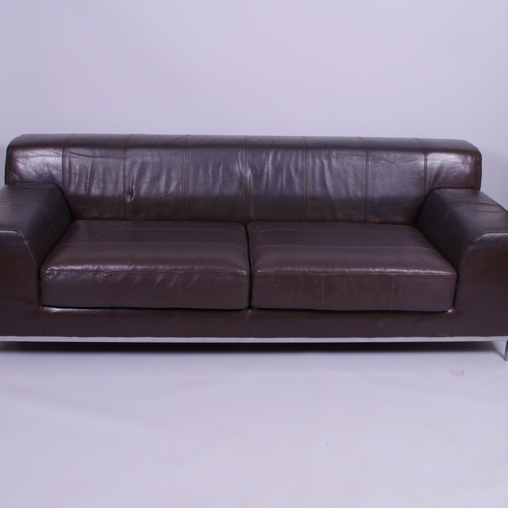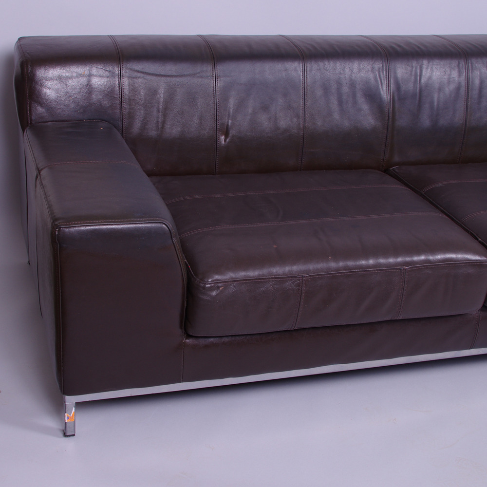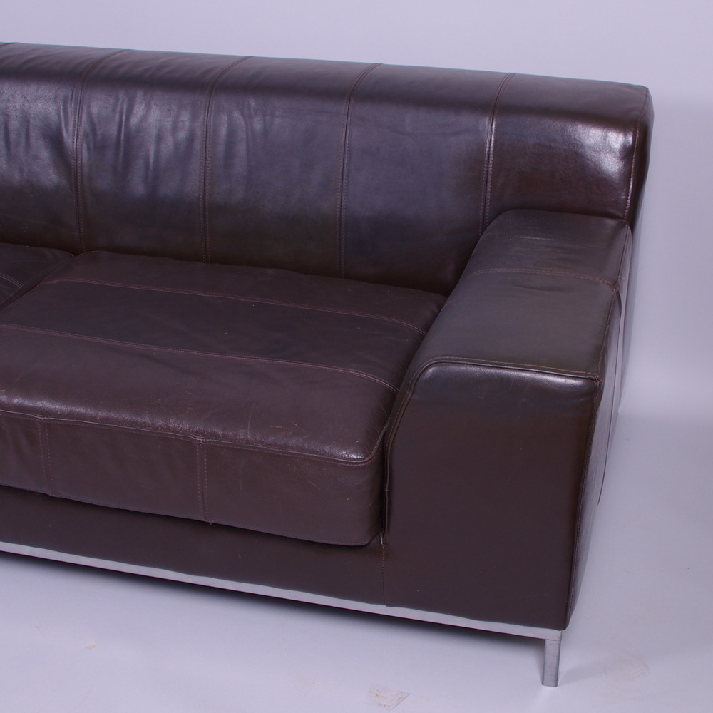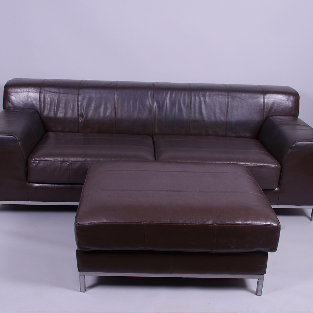 304156. SOFA OG skammel, brunt læder, 2000-tallet.