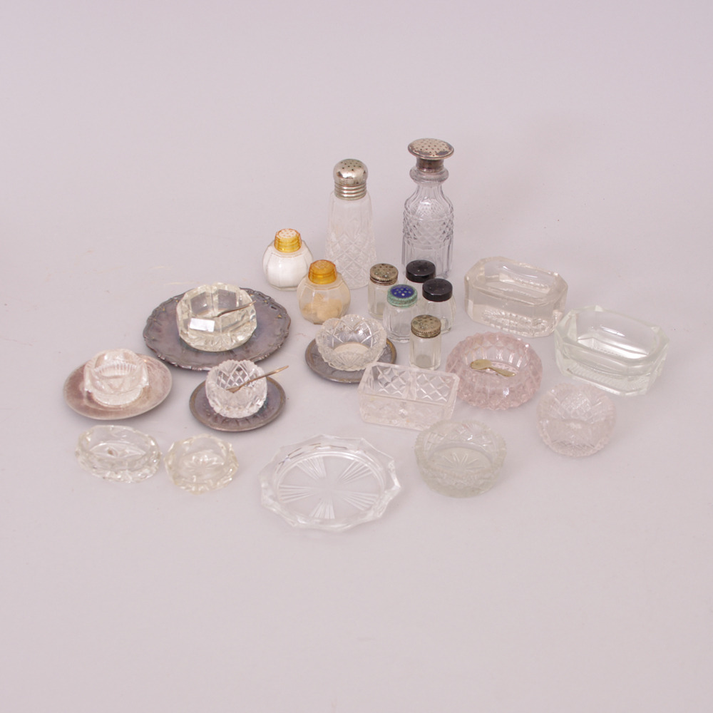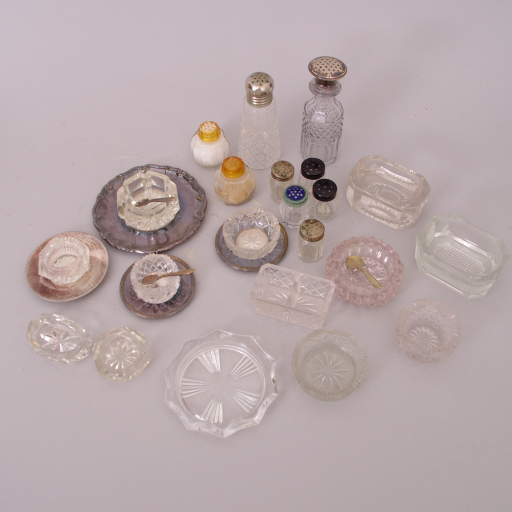 304177. SALTKANDER OG STRUTTER, glas/ nysølv.