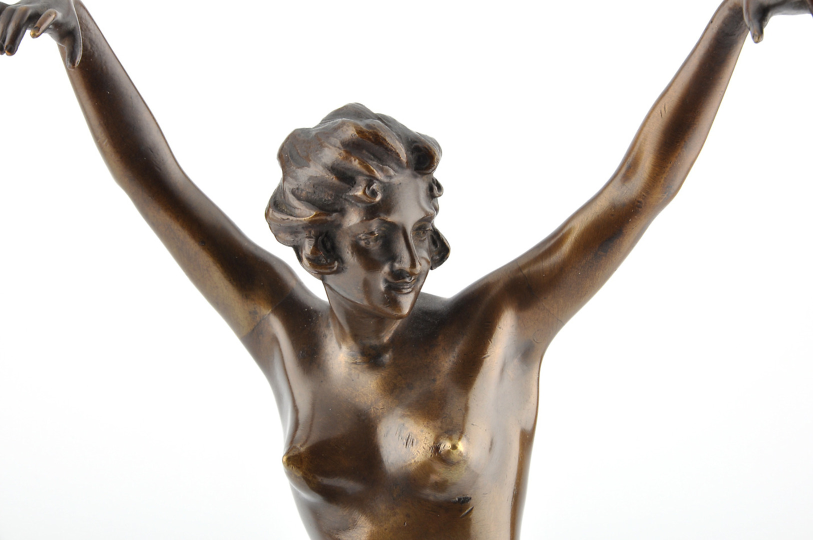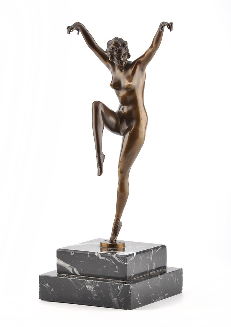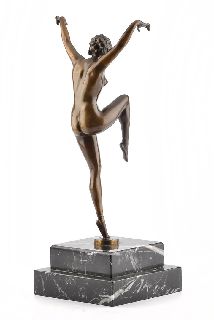 304201. MONOGRAMMIST KB. Nøgen danser. Bronzefigur på marmorbund.