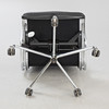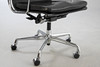 Model: EA 219, høj ryg. Udkast: 1969. Fremstillingsår: Slutningen af 1990'erne Udgave med sort læderbetræk og forkromet aluminiumsramme. Roterbar 5-stjernet base på hjul, højdejusterbar og med vippefunktion. Mærket med etiket.