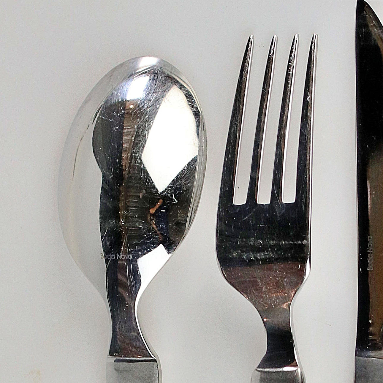 10 stk. spiseskefulde 9 stk. gafler 10 stk. knive Alle mærket Boda Nova.