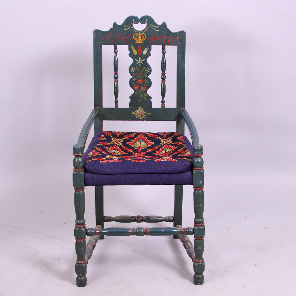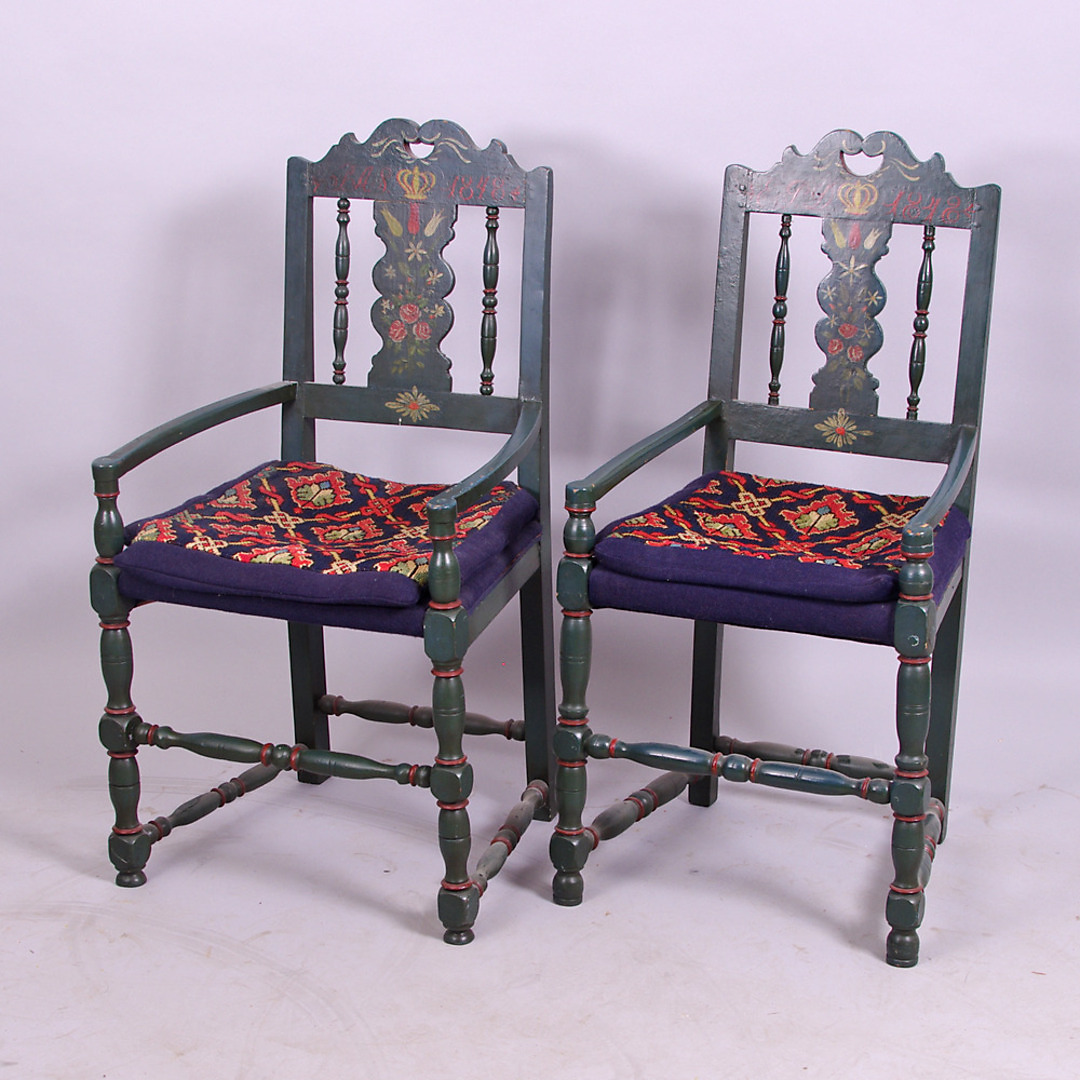 304475. LÆNESTOLE, 1 par, almindelig mand, dateret 1848.