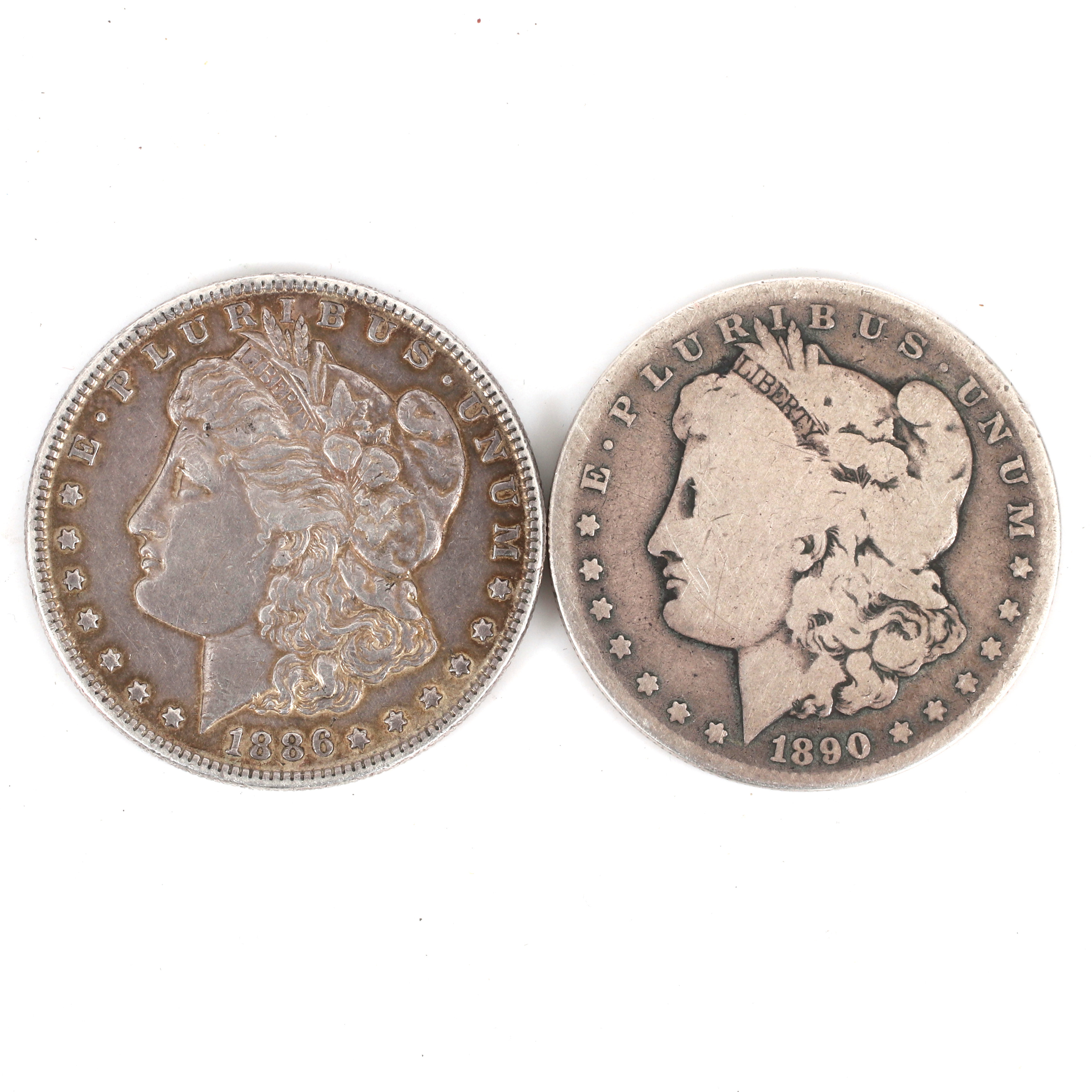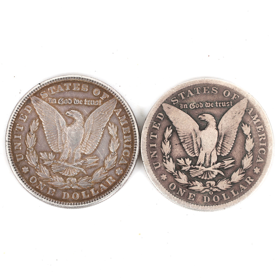 3044764. SØLVMØNT, 2 stk. Morgan Dollar 1886 og -90.
