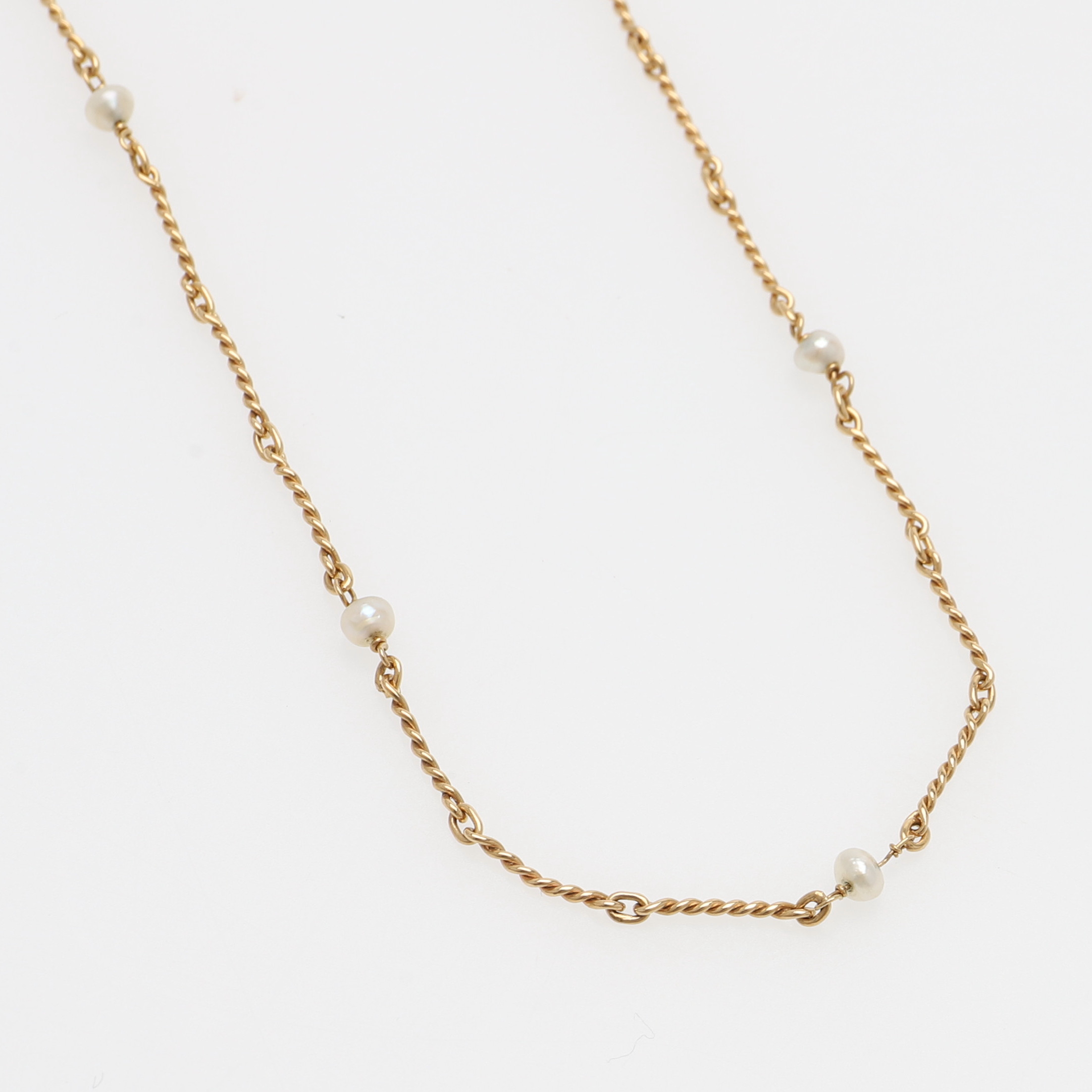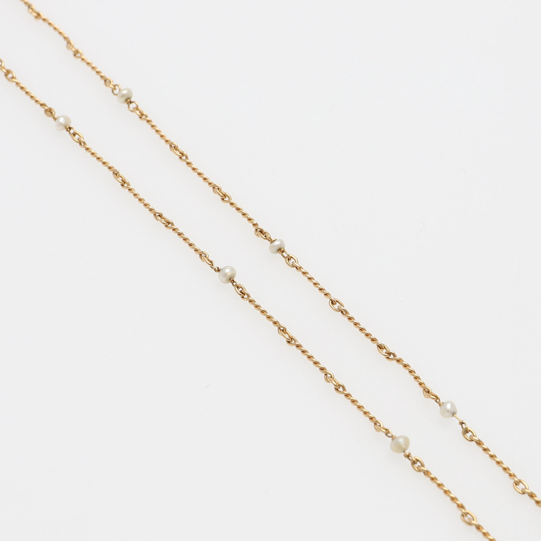 3046375. HALSKÆDE, 18K GULD MED FLODPERLER.