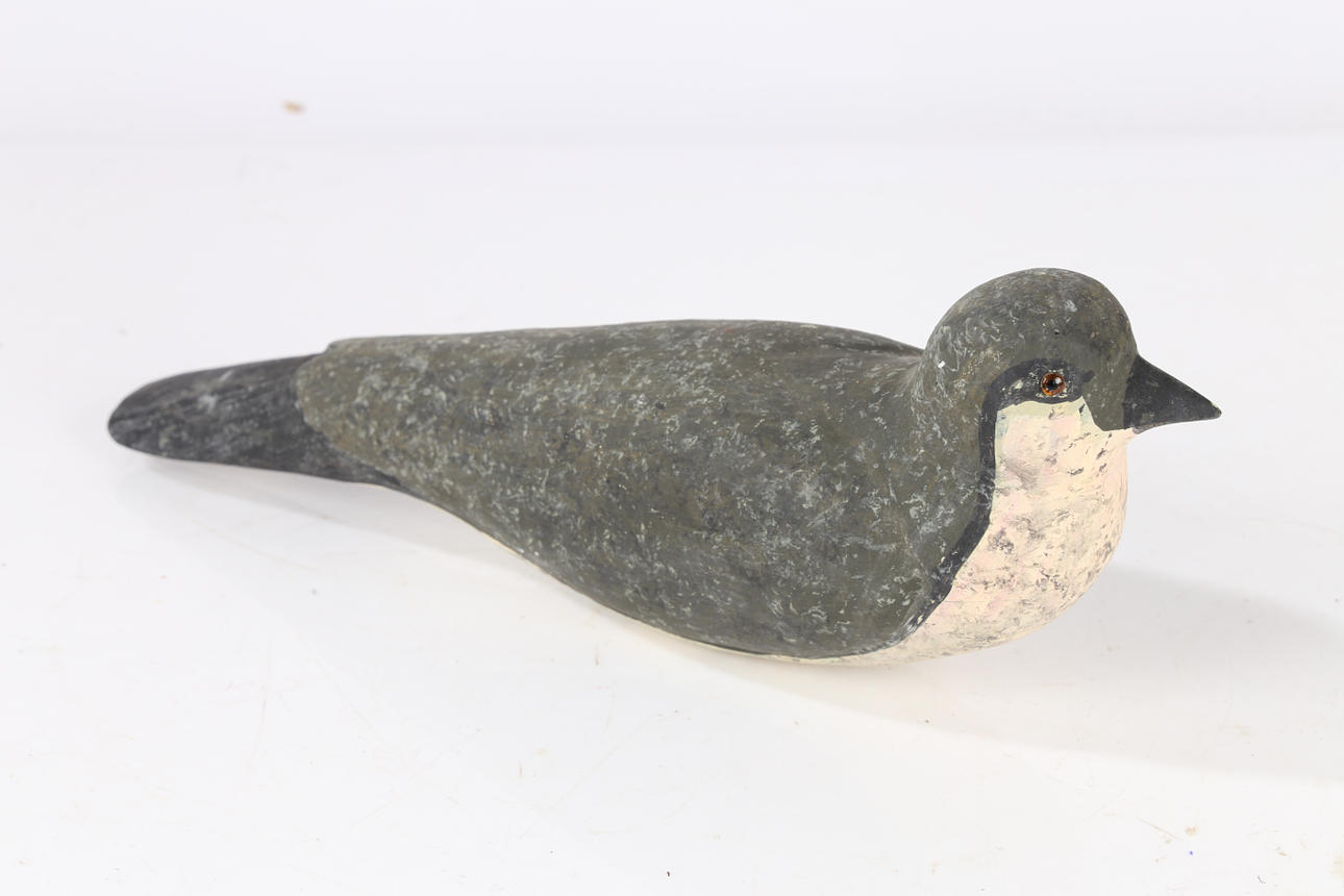 En fransk naiv lokkedue, med en træmalet krop, 33 cm lang.