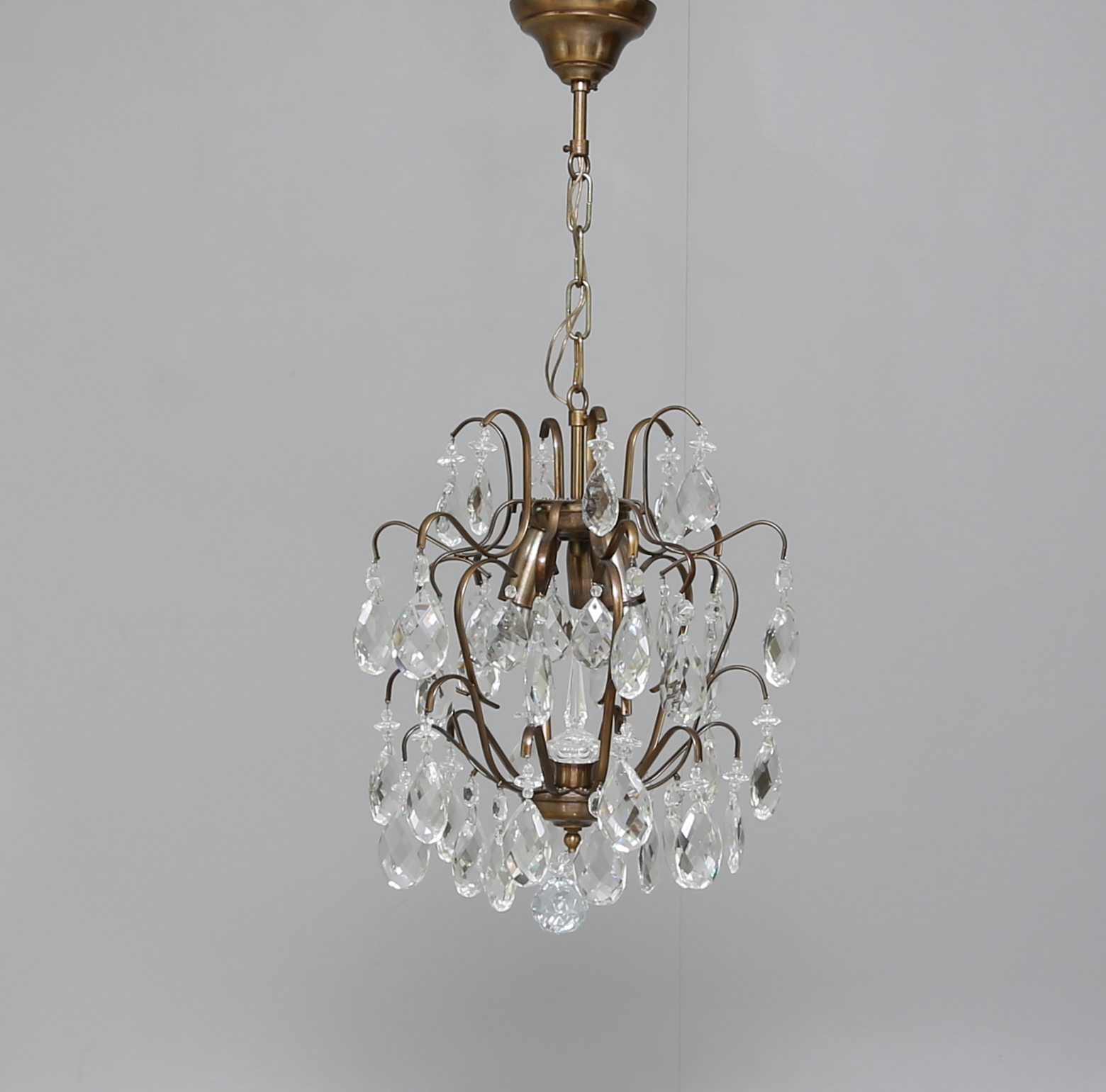 305490. KRYSTALKRONE, messing, barokstil, 20. århundrede.
