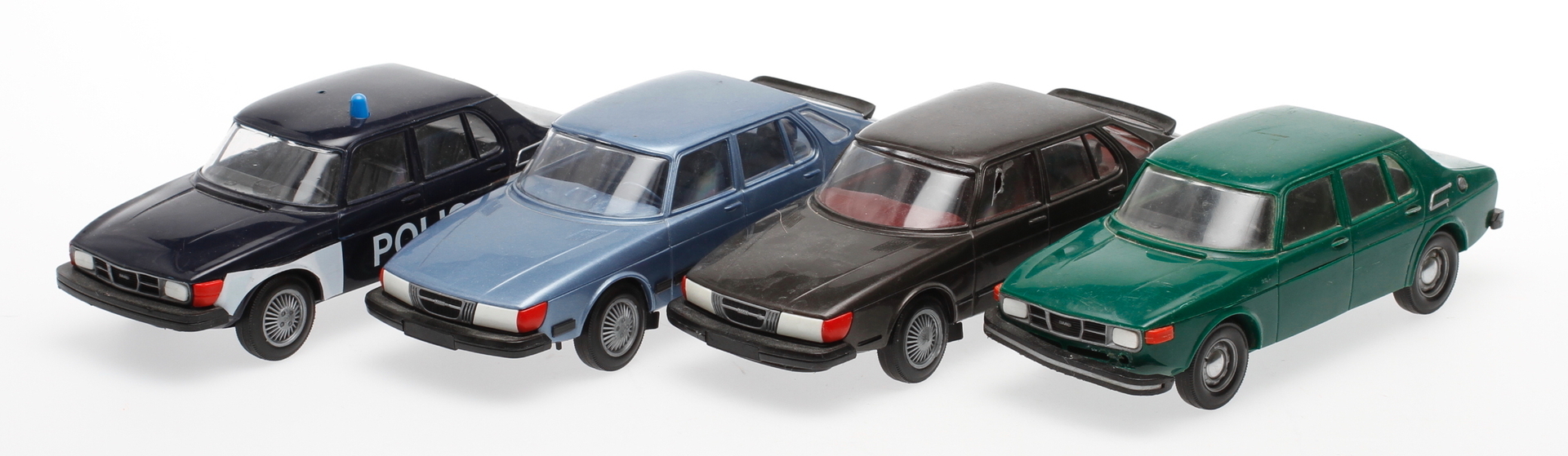 30557. MODELBILER, plastik, 4 stk. inkl. saab politibil.
