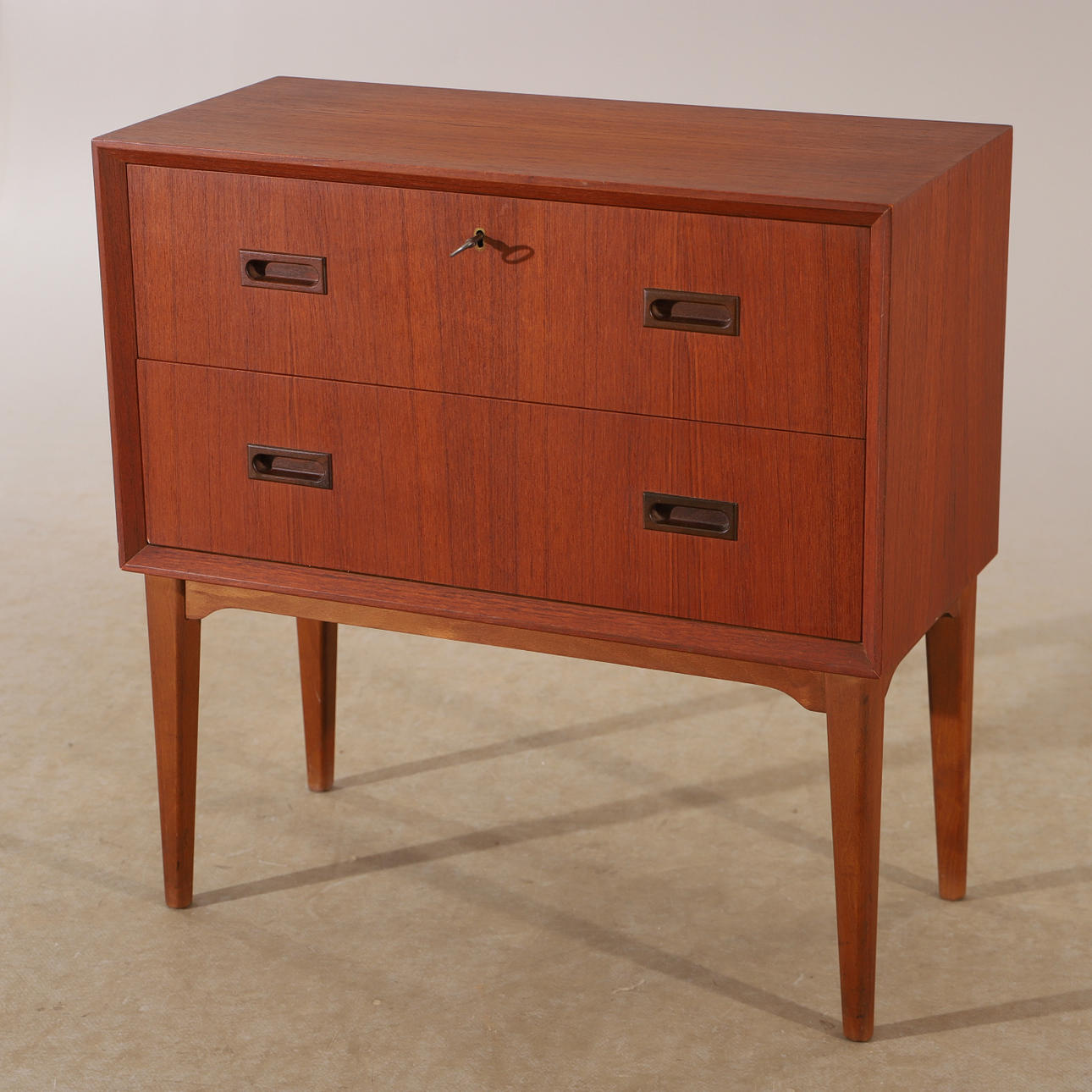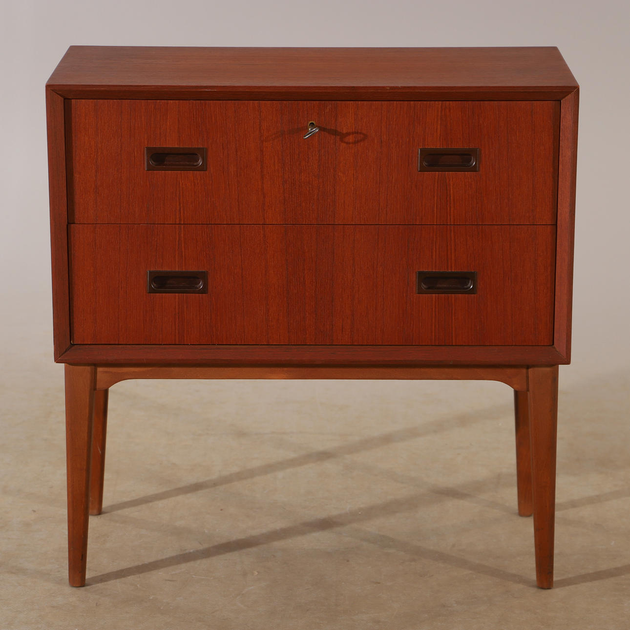 3056345. Kommode, 2 skuffer, teaktræ, midten af ​​det 20. århundrede.