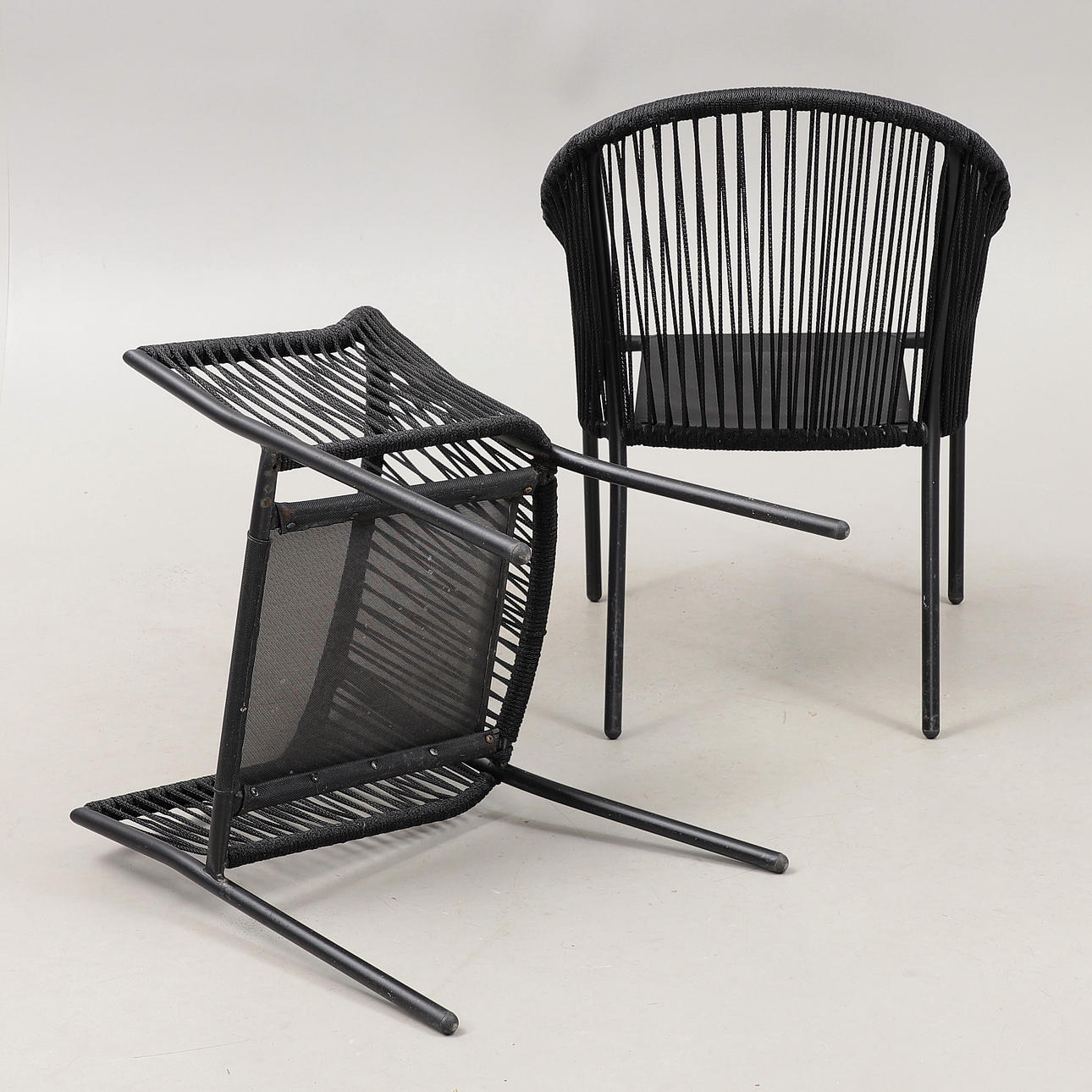 3061152. HAVESTOLE, 3 stk, stål/snor. 2000'erne.