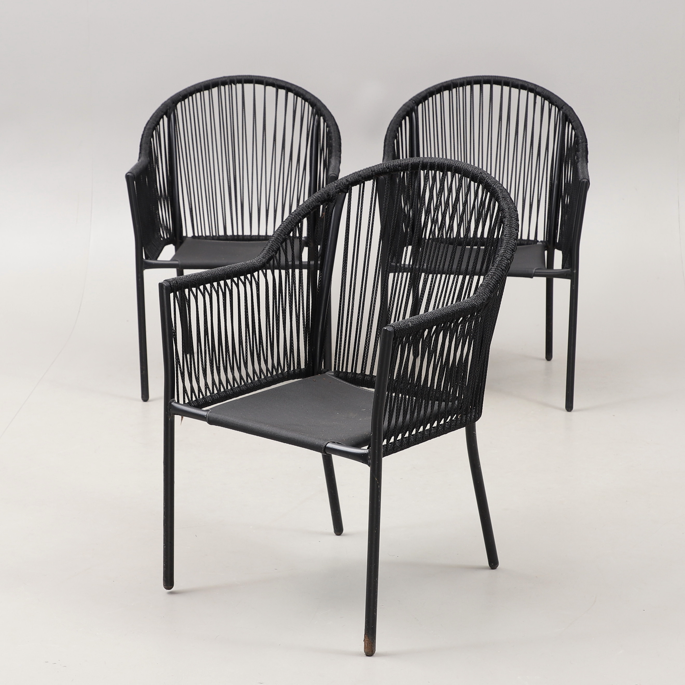 3061152. HAVESTOLE, 3 stk, stål/snor. 2000'erne.