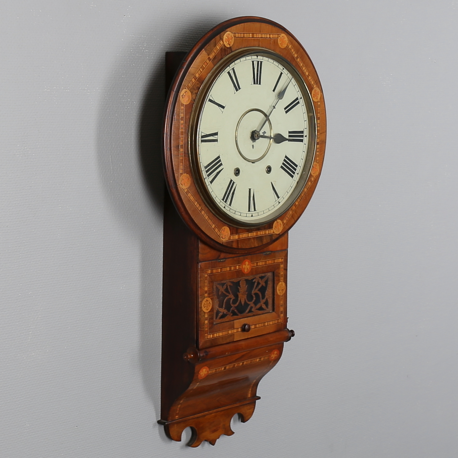 306336. VÆGUR i træ med intarsia, århundredeskiftet 1900.