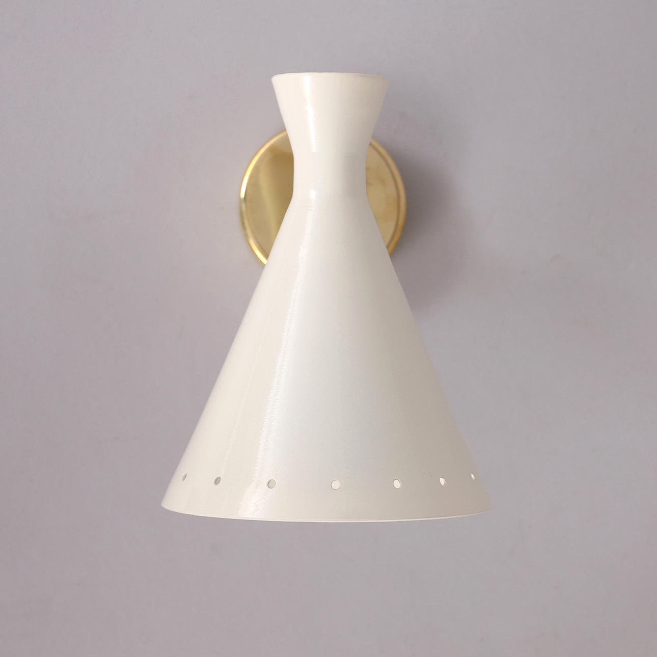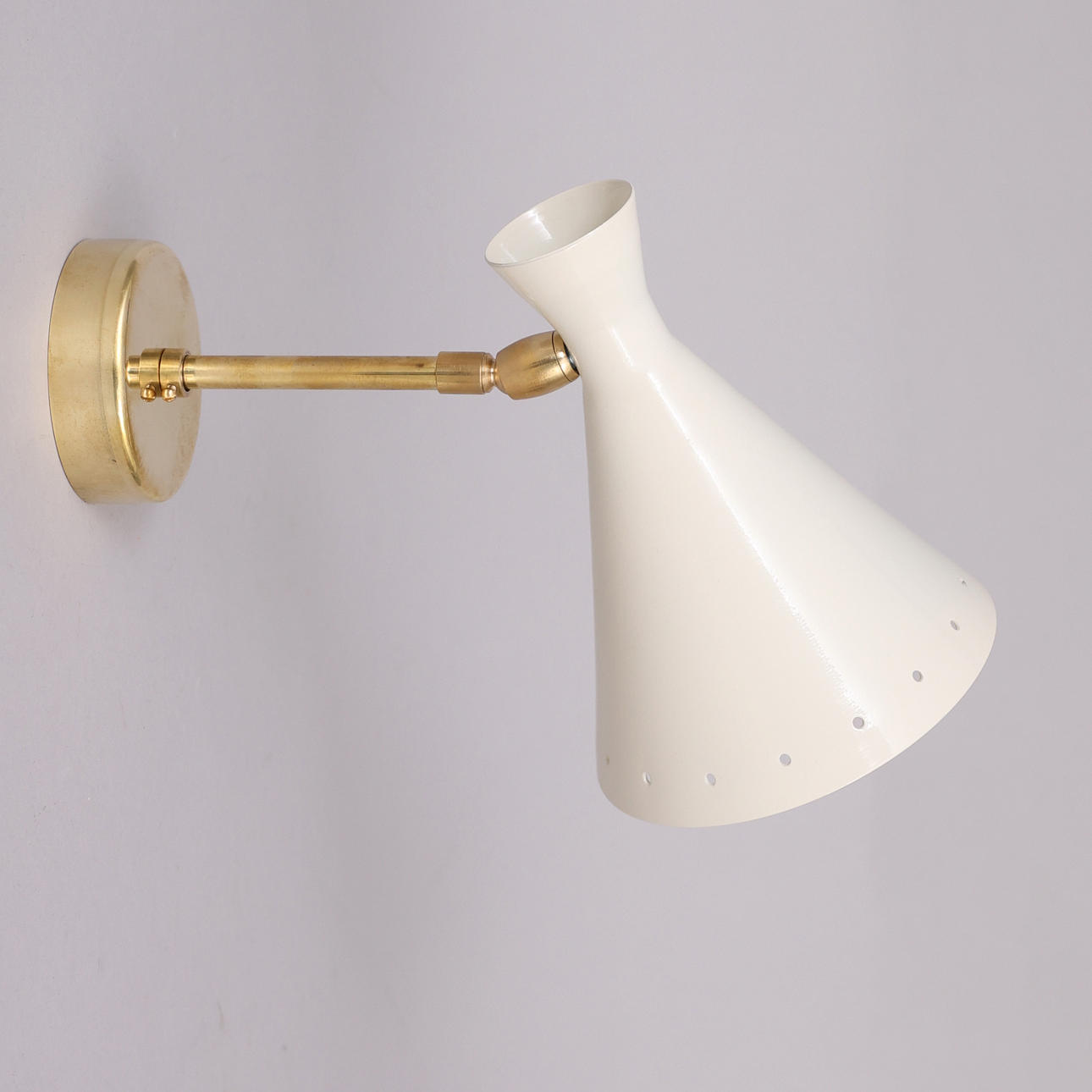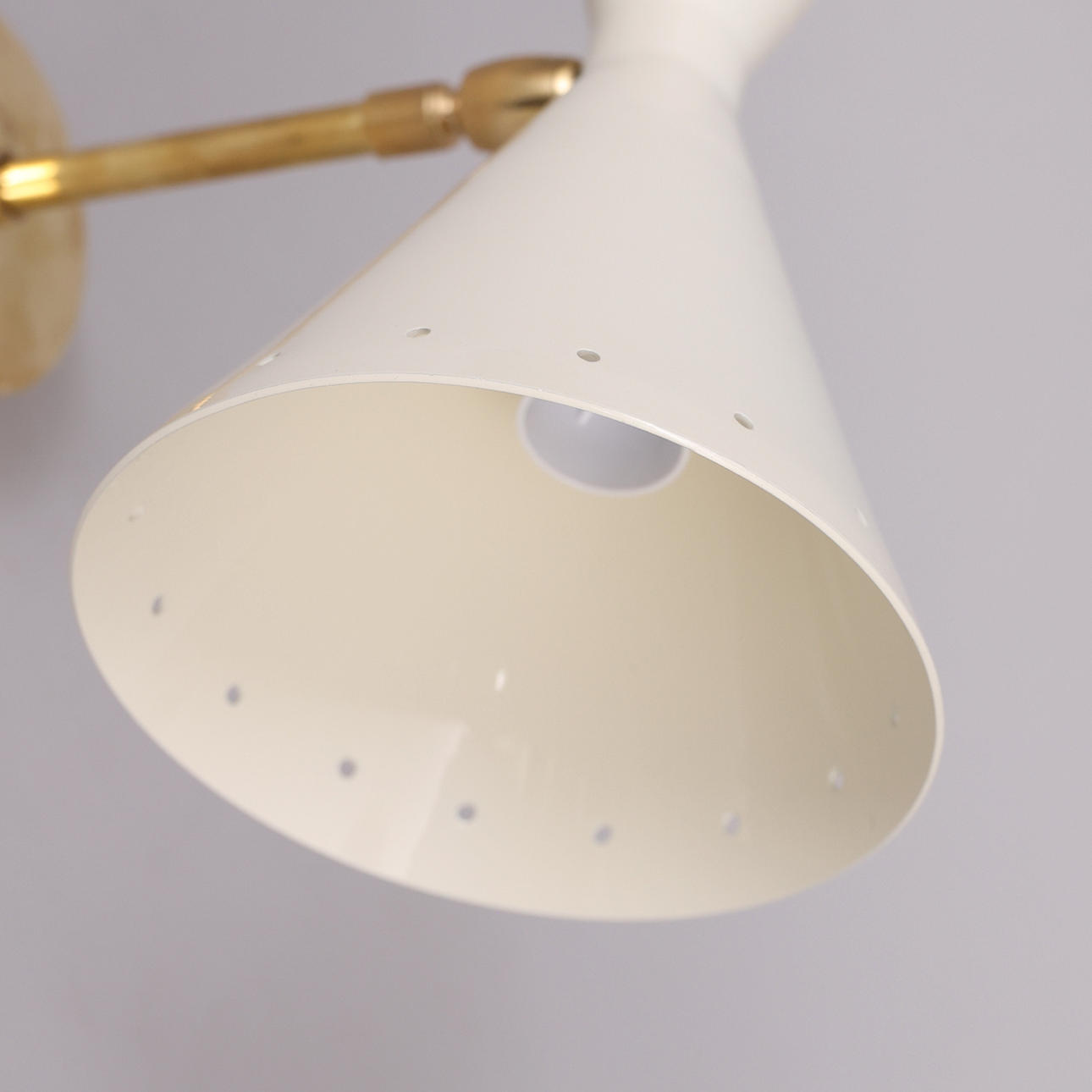 Stel i patineret messing, skærme i lakeret og emaljeret metal, ét lyspunkt, E14 Højde 16 cm Kompatibel med alle typer LED/Halogen/Glødelys.