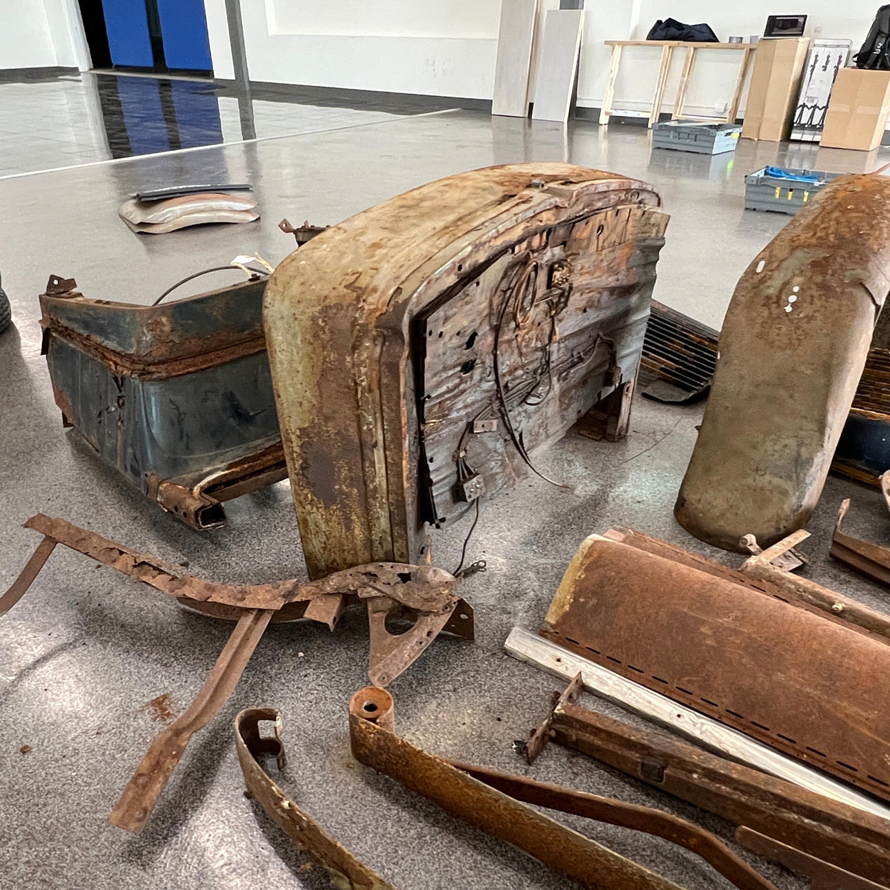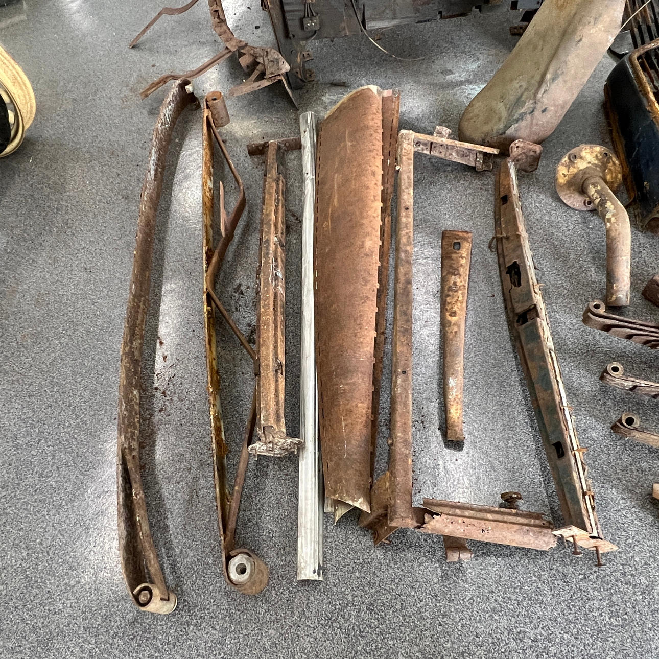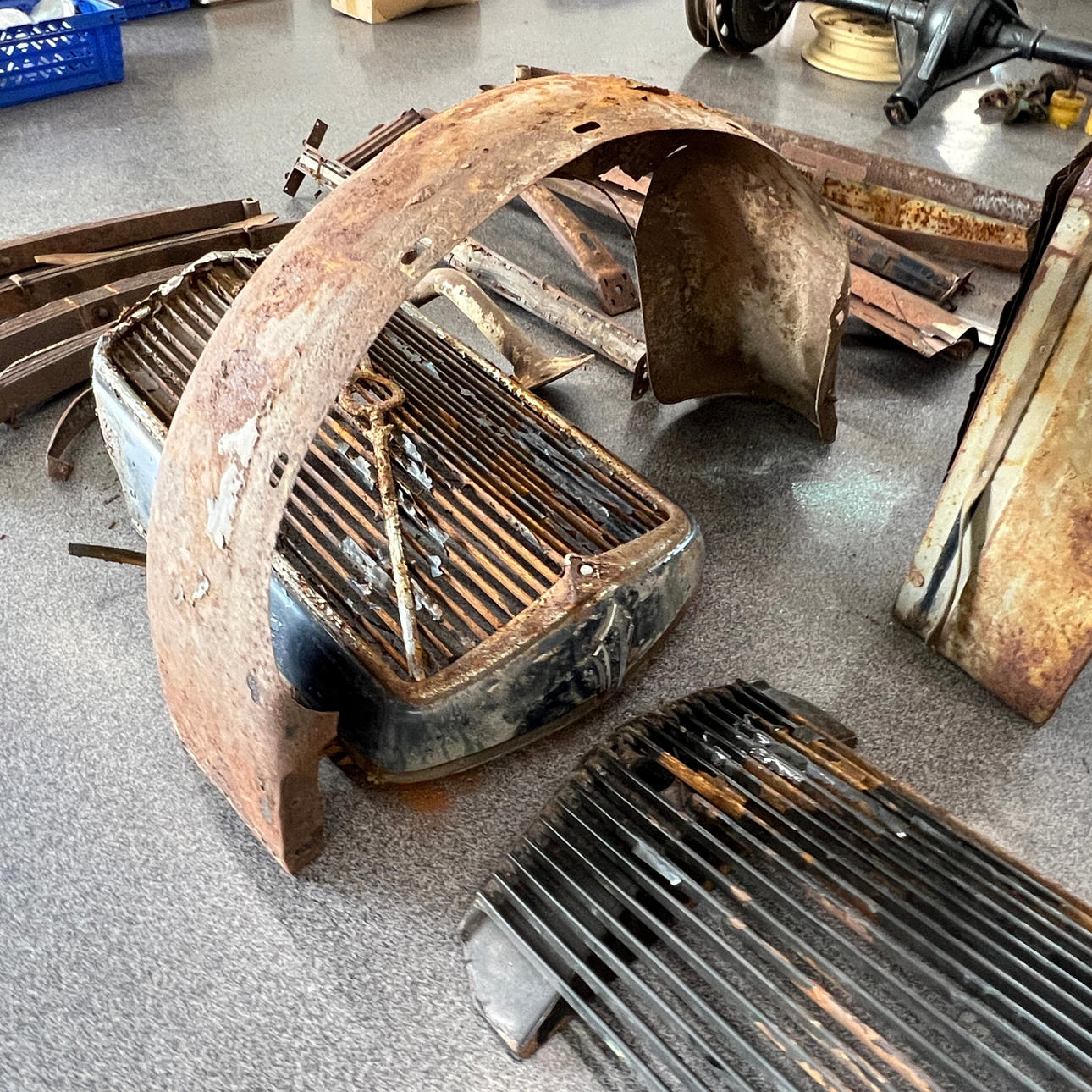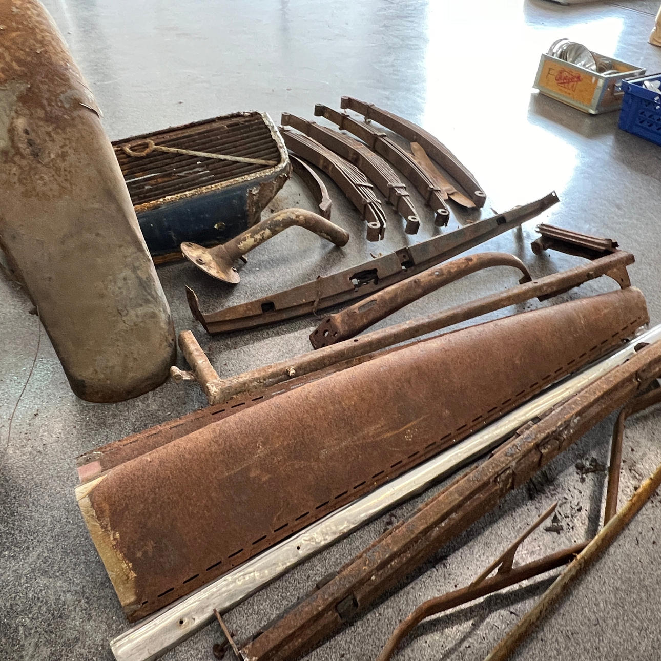 Blandt andet torpedovægge, radiatorafdækning, bladfjedre, bagskærm, kofanger, rejsehjulholder m.m.