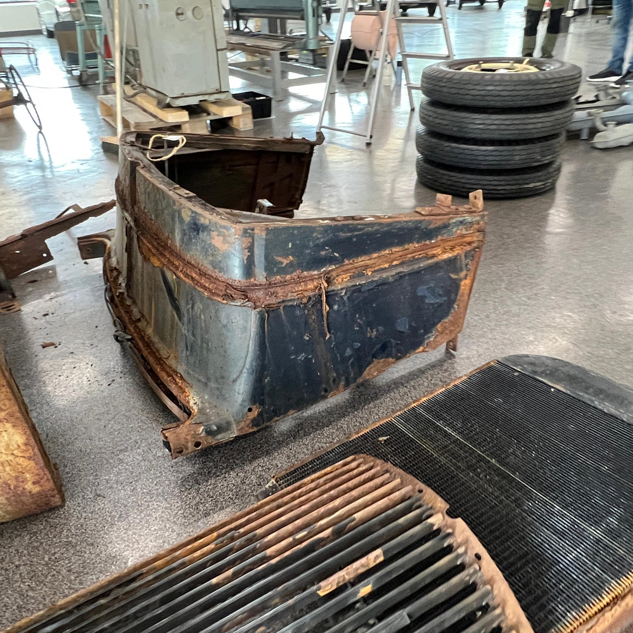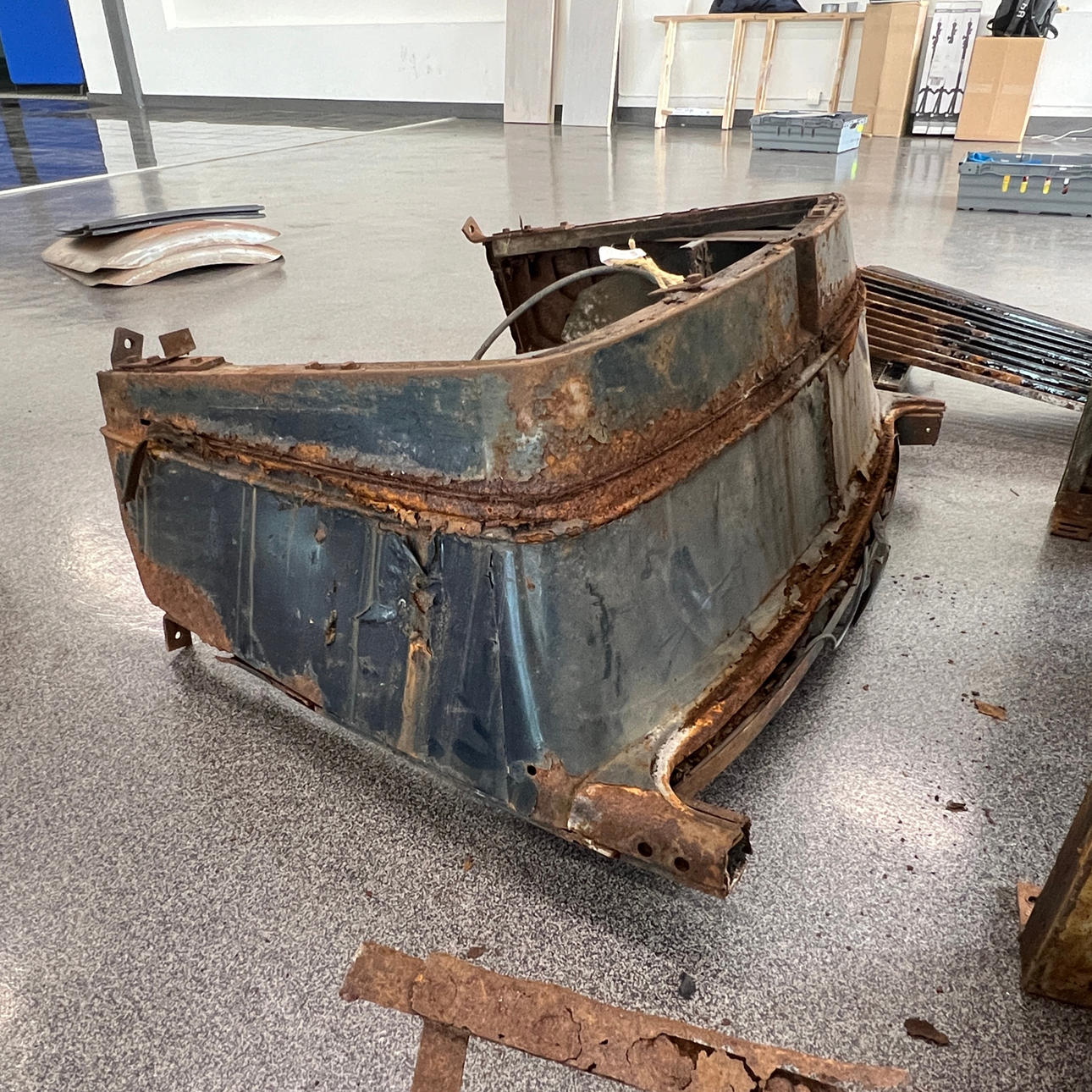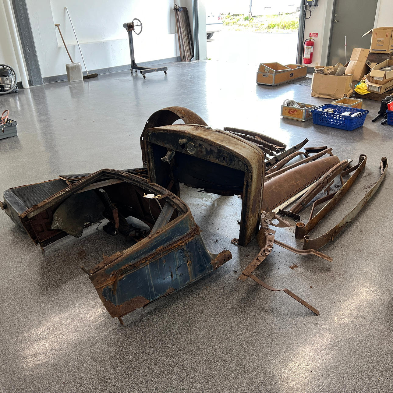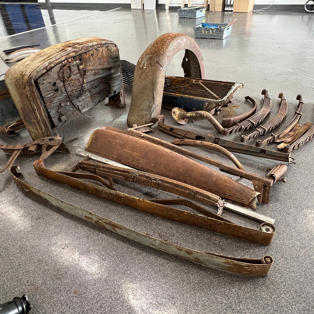 Blandt andet torpedovægge, radiatorafdækning, bladfjedre, bagskærm, kofanger, rejsehjulholder m.m.