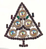 Brochesæt med farvede rhinsten, udformet som juletræ, ryg med nål, str. ca. 8x7 cm.