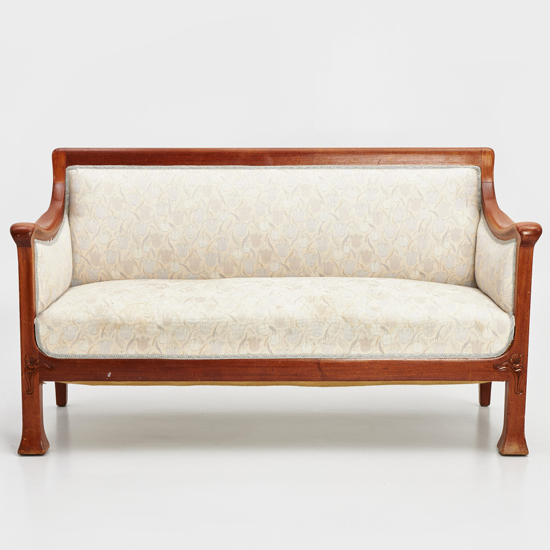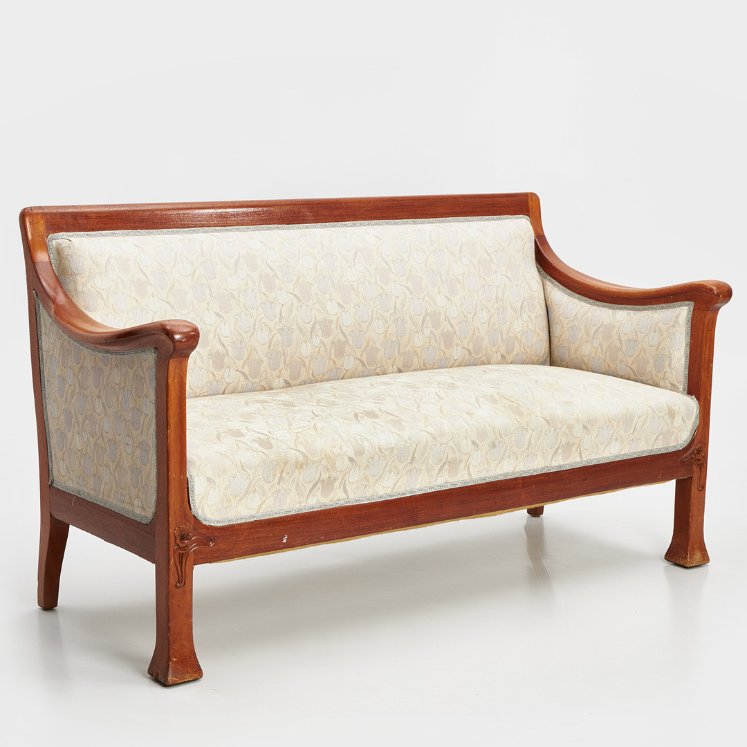 3071720. SOFA, Jugend, mahogni, dekor af blomster.