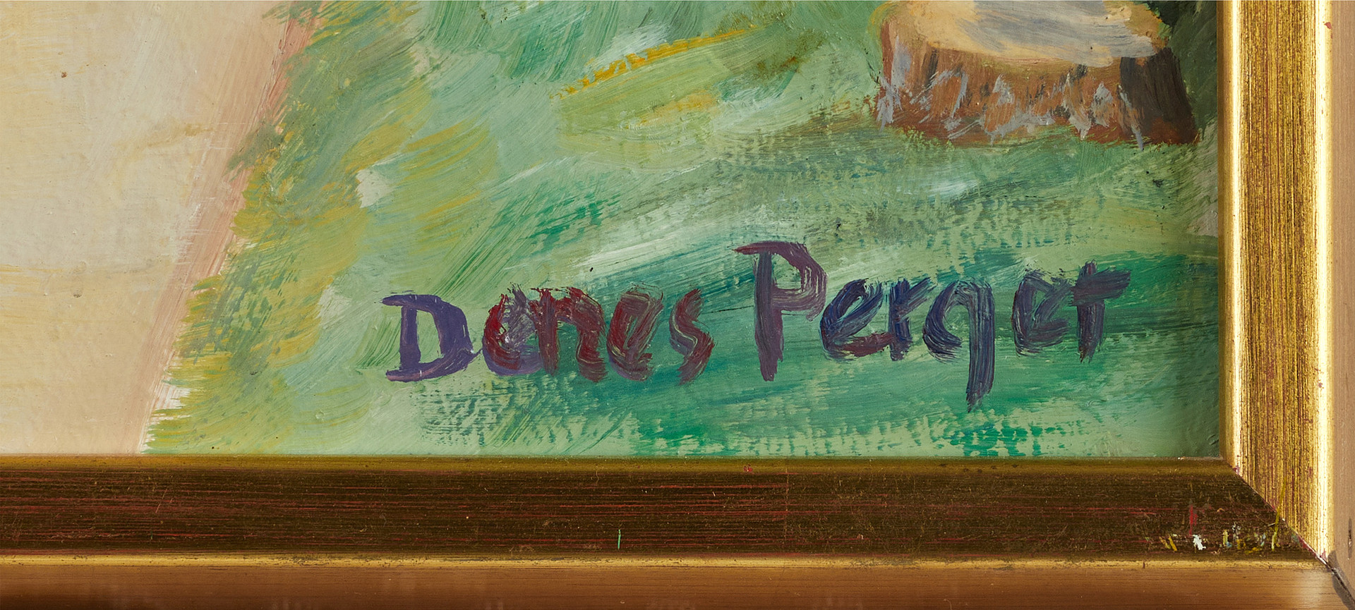 3073203. DENES PERGER. Strandvilla, Olie på Panel.