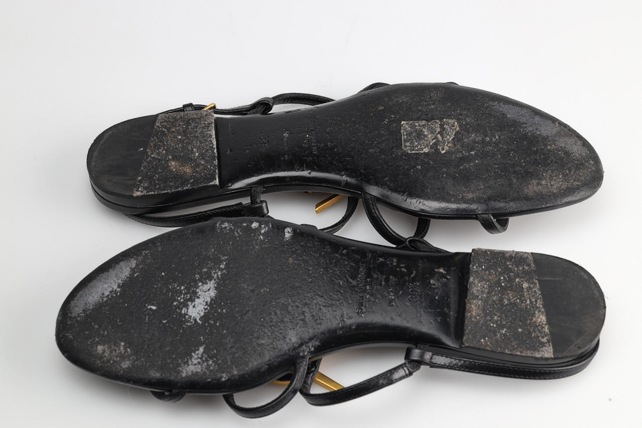 3075383. SAINT LAURENT, Sko / Sandaler i sort læder, str. 39,5.