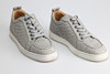 grå lav sko med snørebånd, grå slangeskindsmønstret skii med hvid gummistøvle. Str 39, indvendigt mål ca 25 cm. I original skoæske.