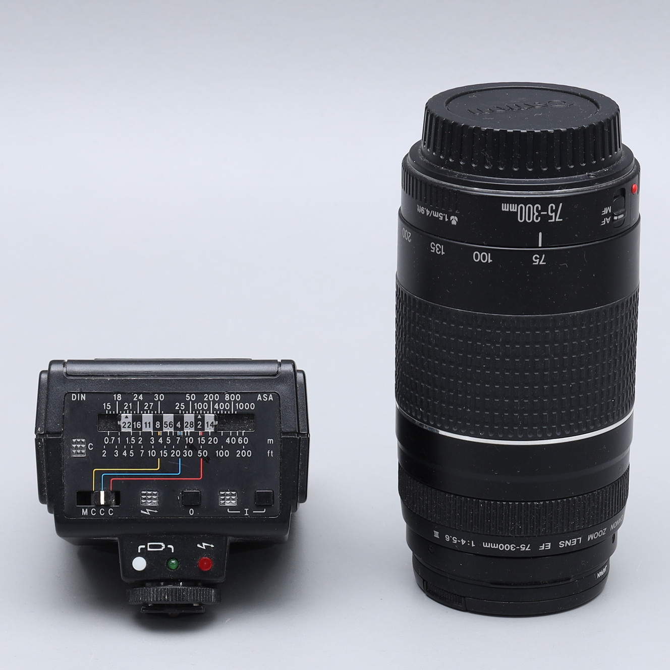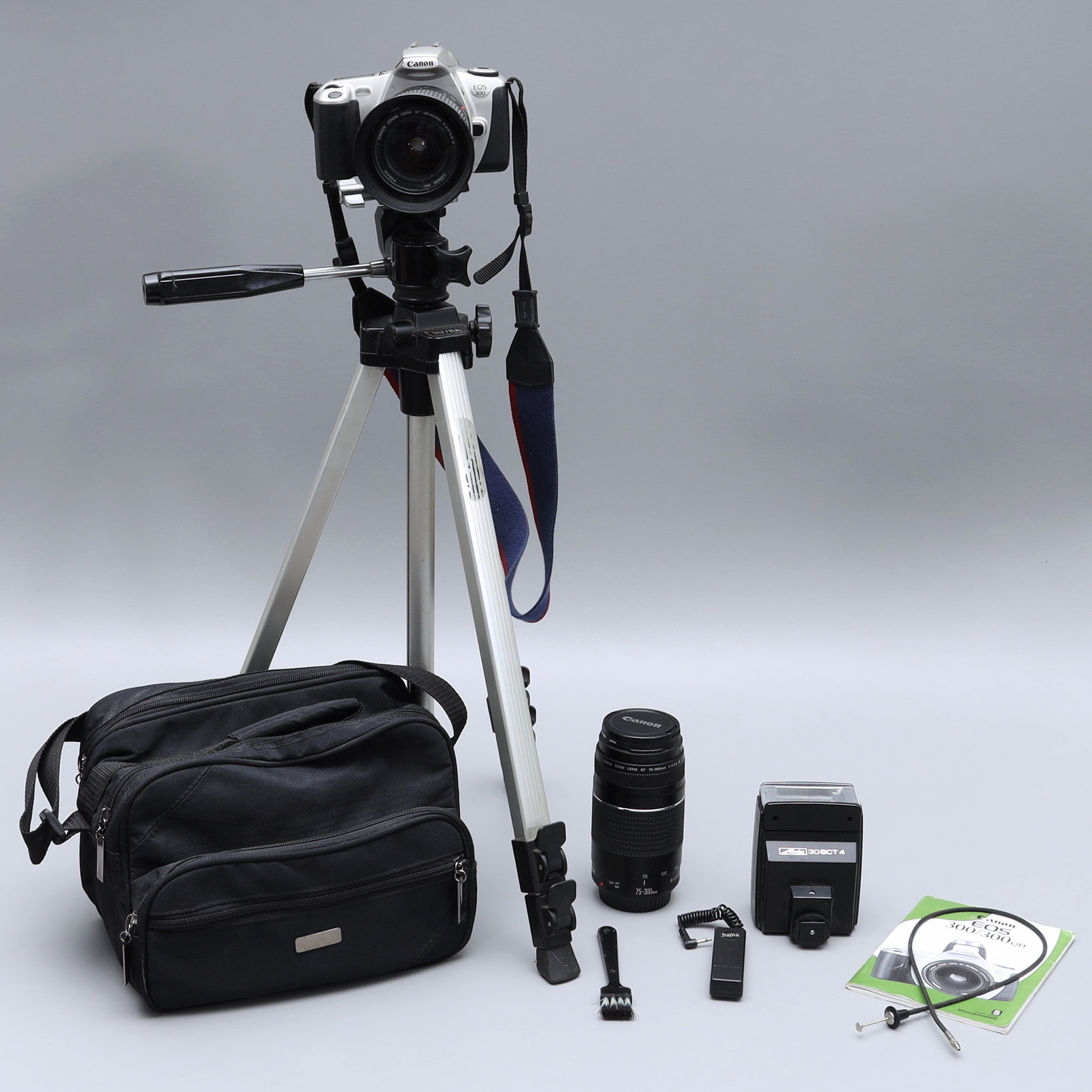 3076536. ANALOGT SYSTEMKAMERA med tilbehør, Canon EOS 300.