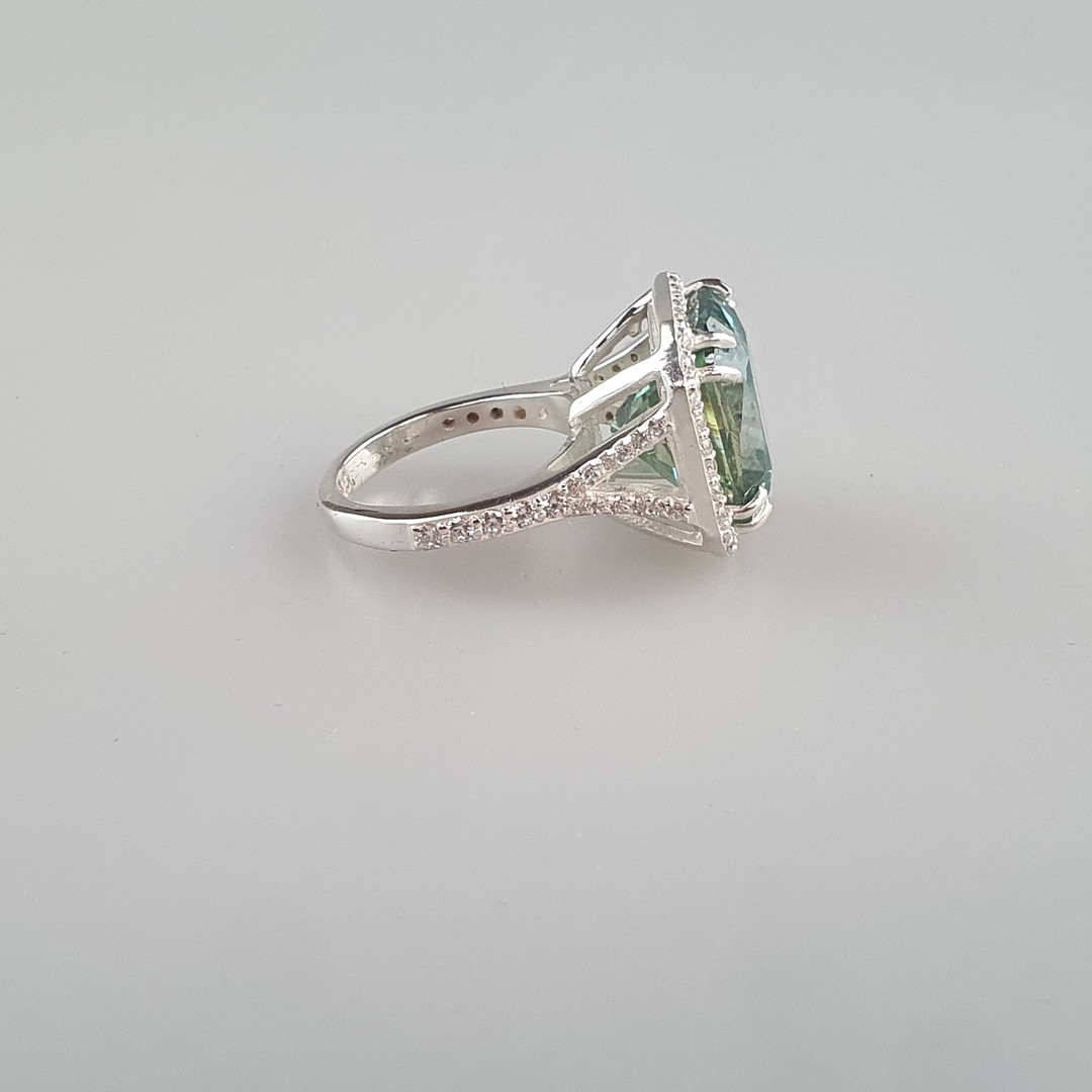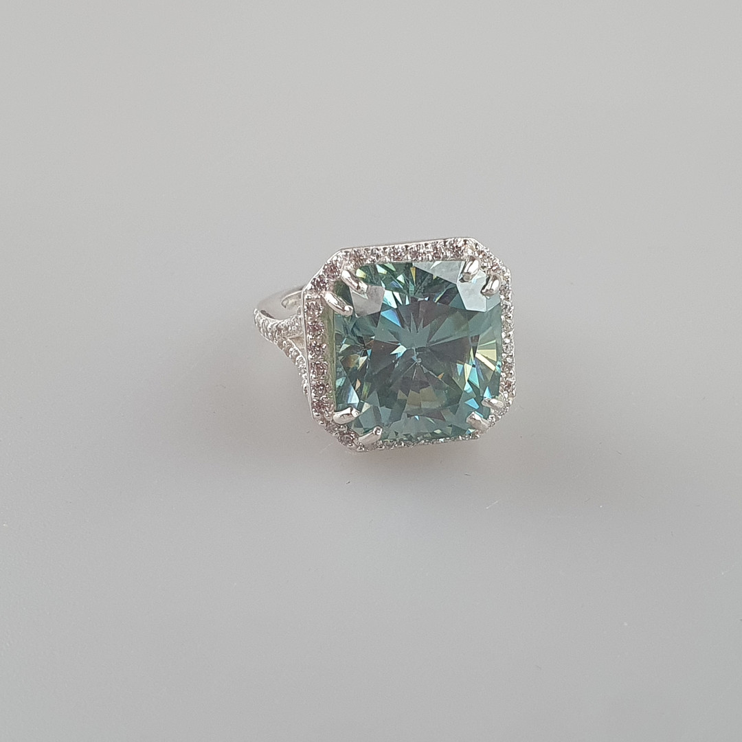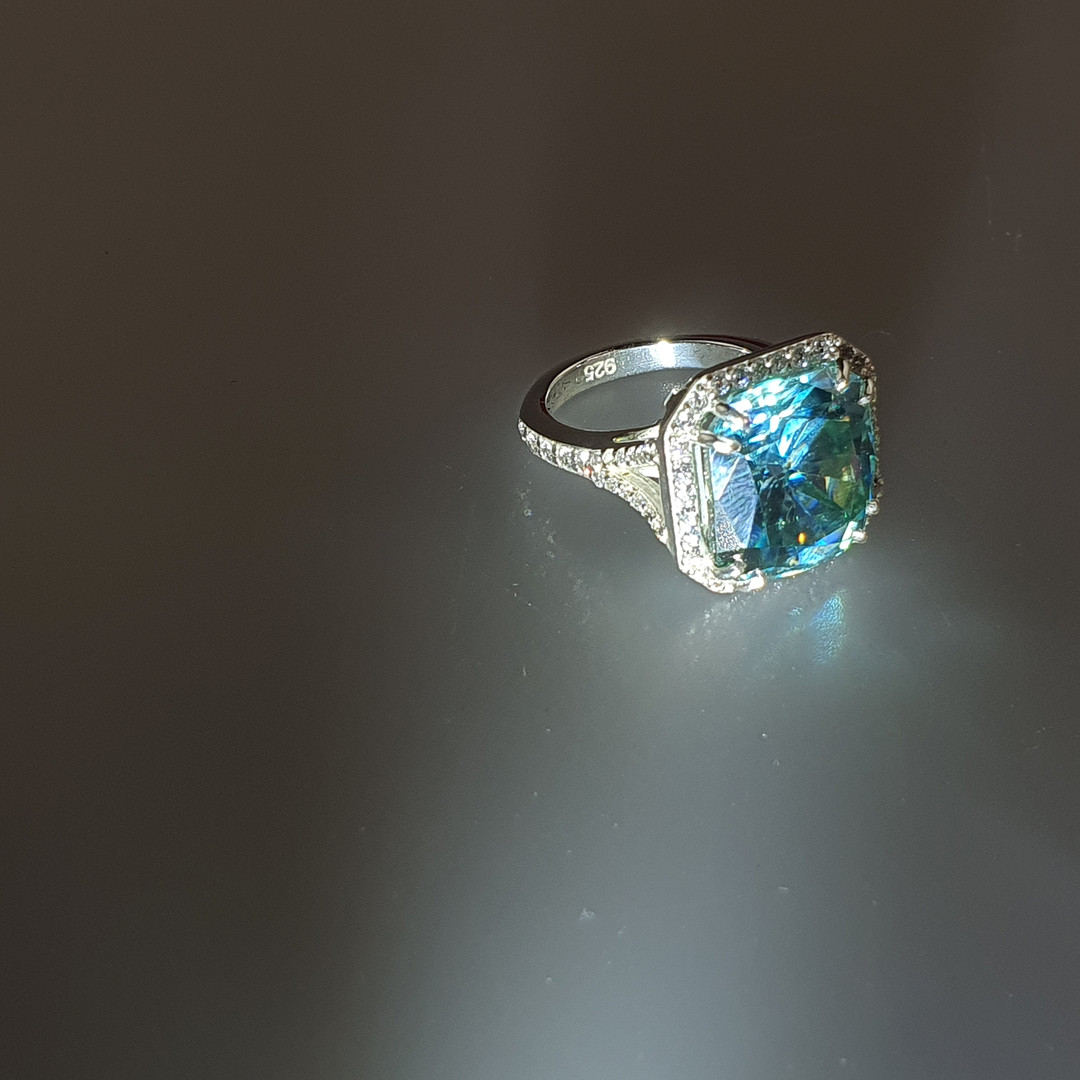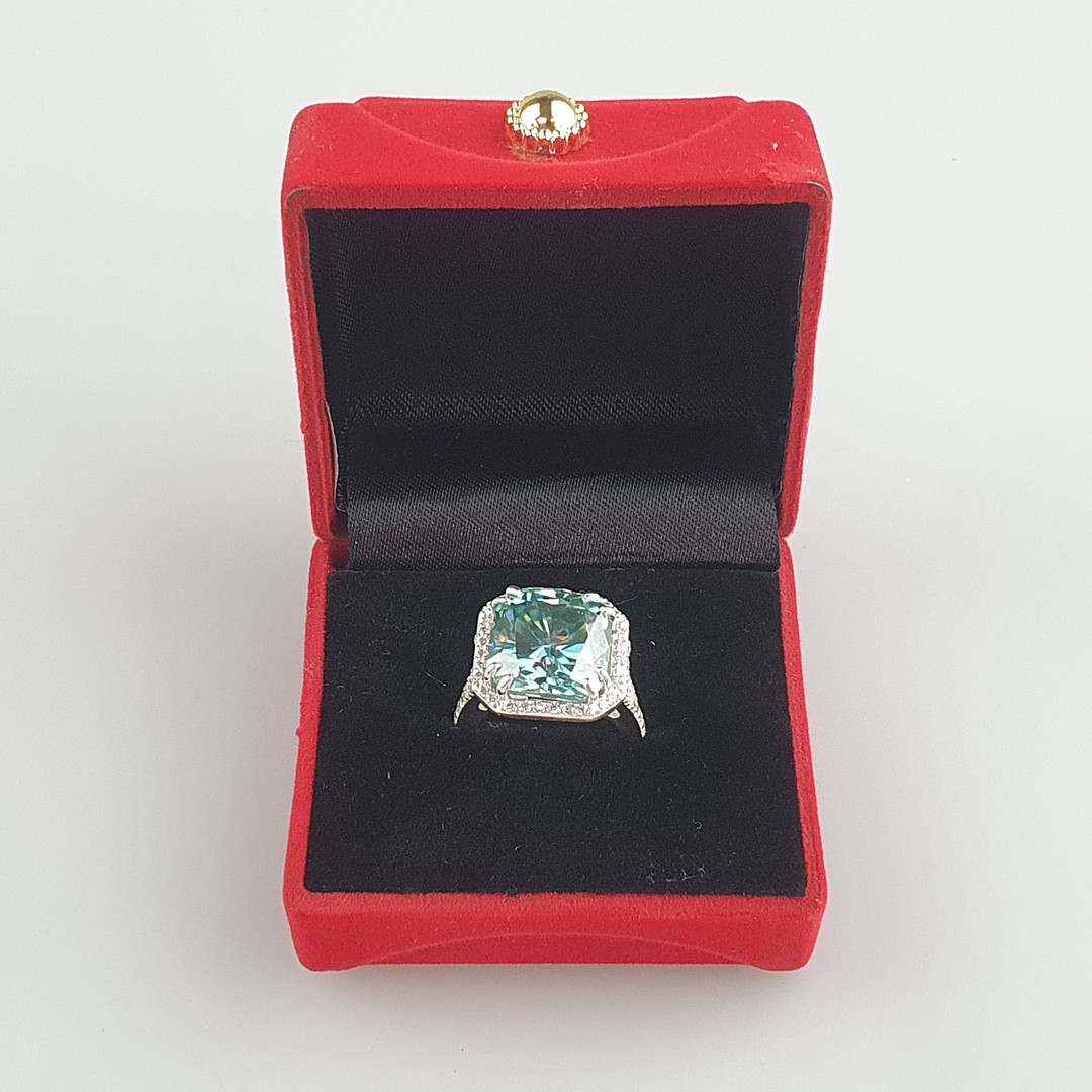 3077025. - 15,55 ct blå moissanite ring, 925 sølv.