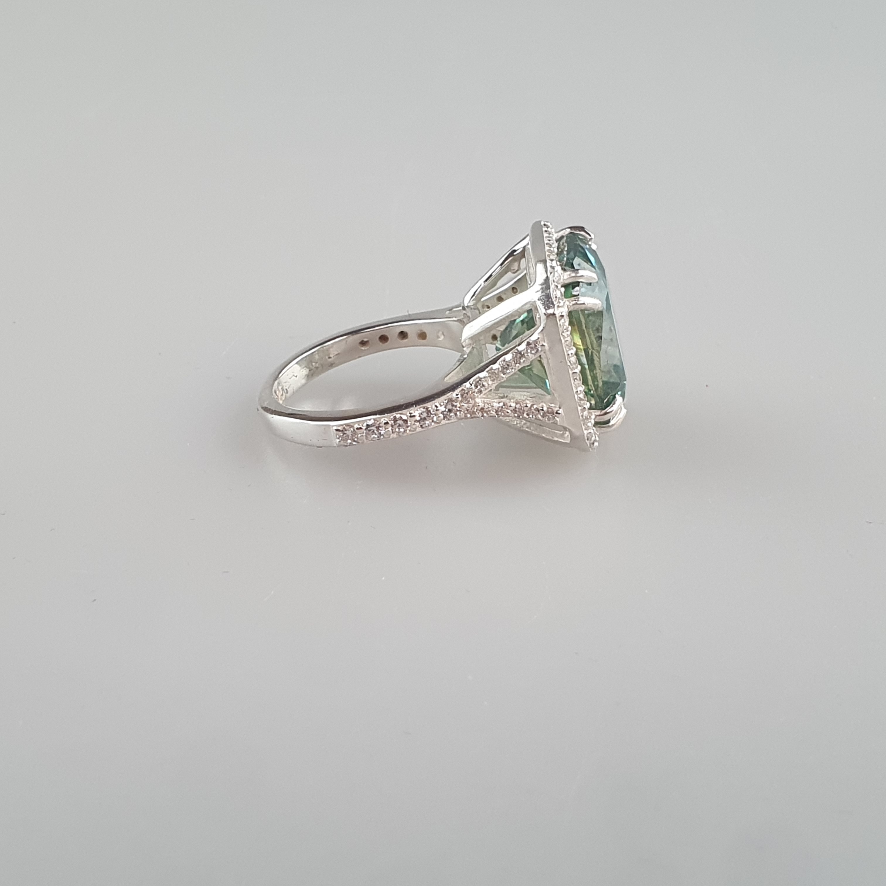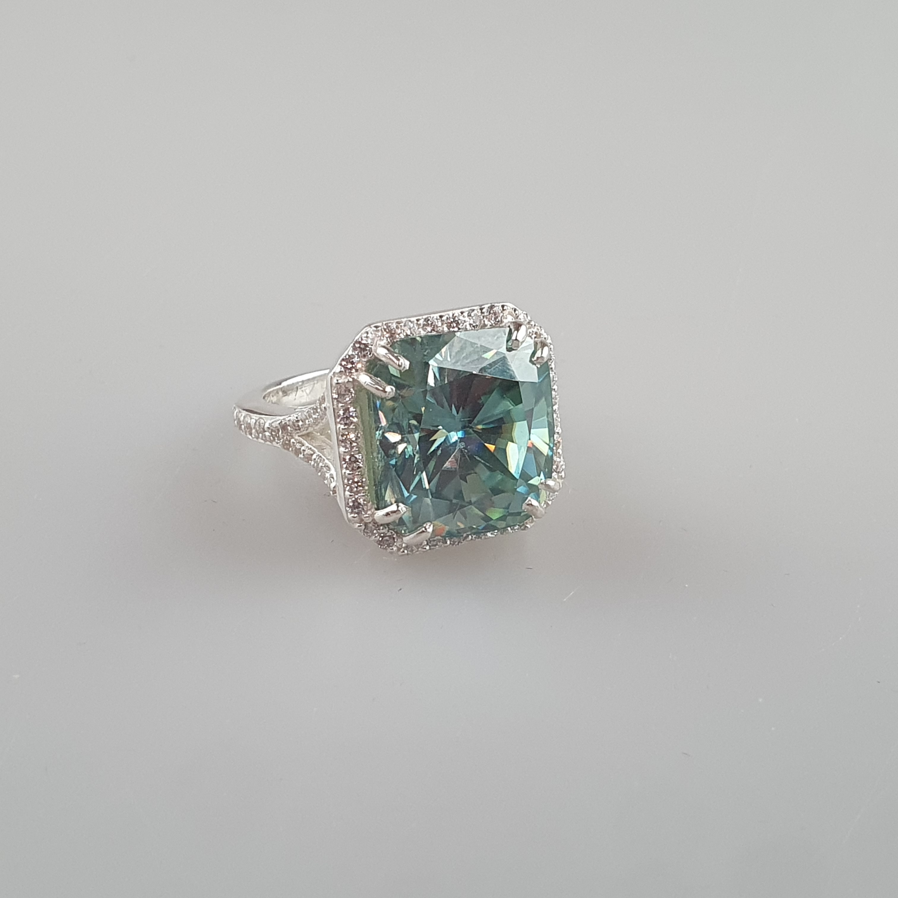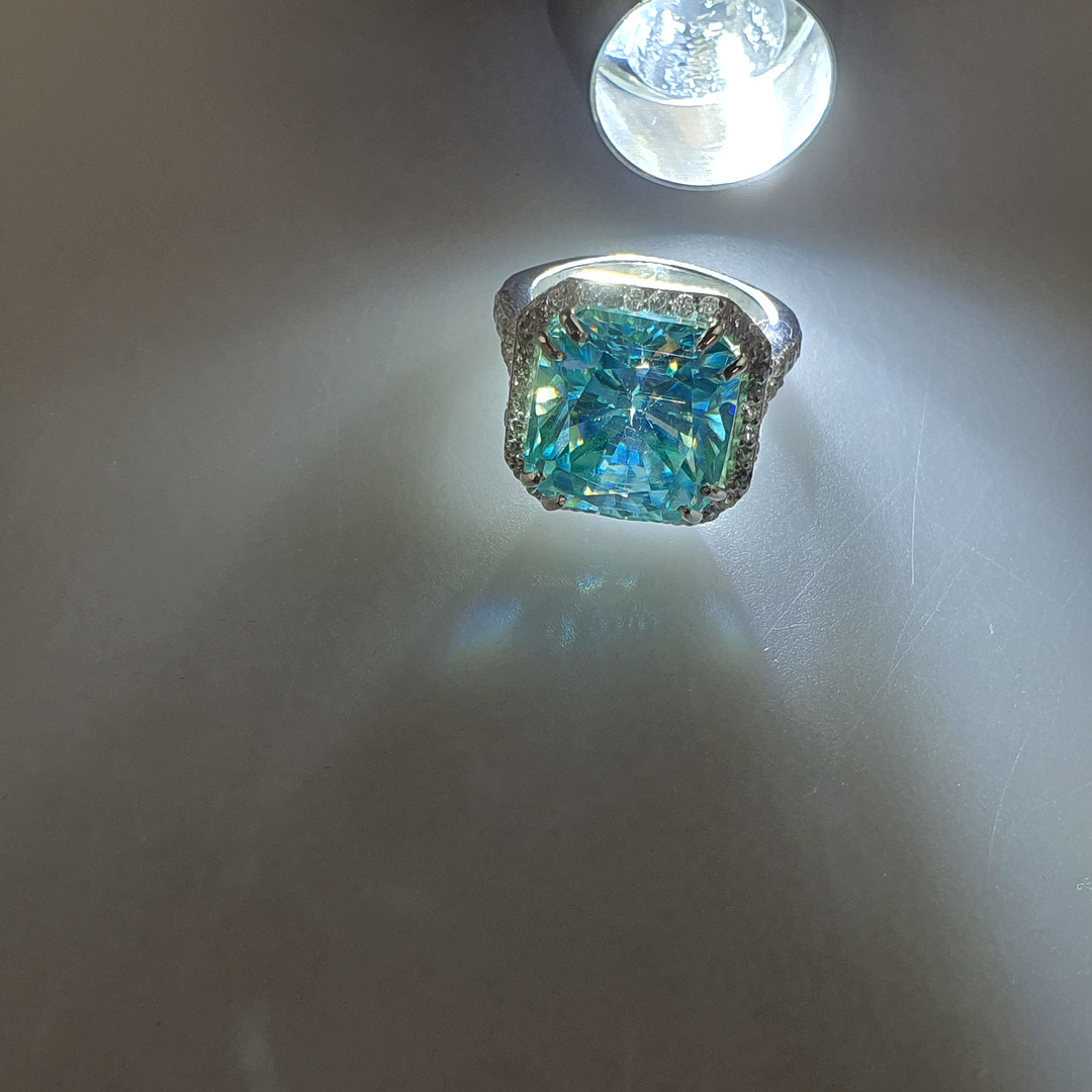 3077025. - 15,55 ct blå moissanite ring, 925 sølv.